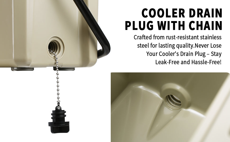 3.Drain Plug Security: We've solved the issue of losing the drain plug. Attached with a handy chain, the drain plug cap is always within reach when it's time to drain the cooler. Enjoy effortless cleanup after your journeys.