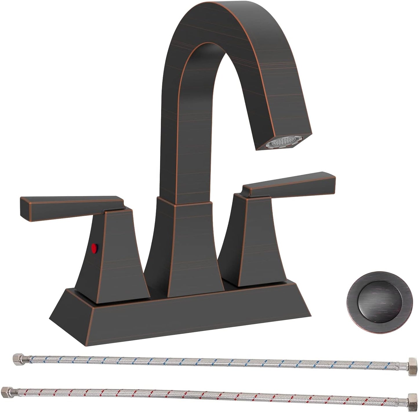 - [EASY INSTALLATION]: The brushed gold bathroom faucet comes with a plastic Pop up Sink Drain Assembly with Overflow and 2 high-density solid braided nylon tub water supply lines. 4-inch centerset and 3 hole mount design allow for easy installation. Detailed installation instructions will guide you on how to perform installation quickly.