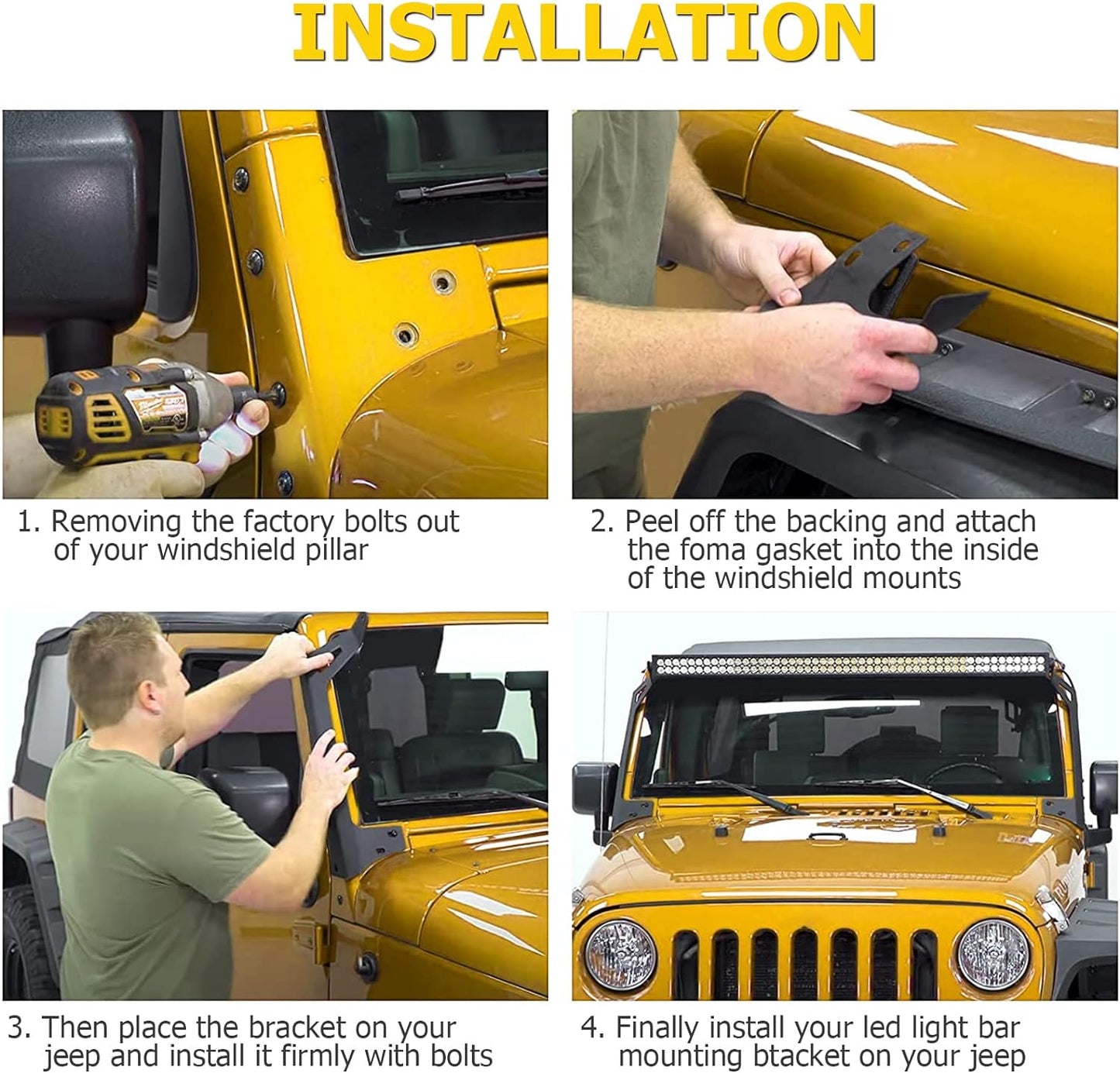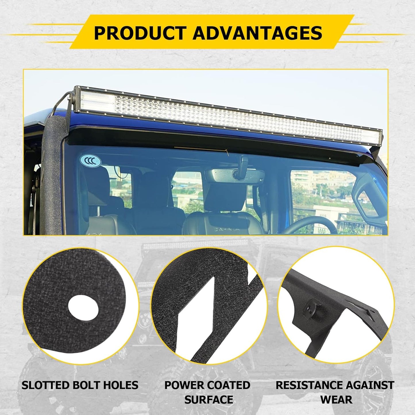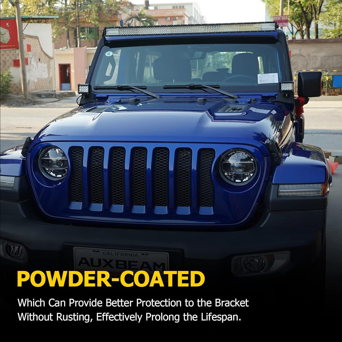 ●SUPERIOR PROTECTION: Solid construction offers support and protection for your Jeep's windshield frame and A-pillars. Meanwhile, secures your light bar firmly, you don't need to worry about the safety of your light bar.