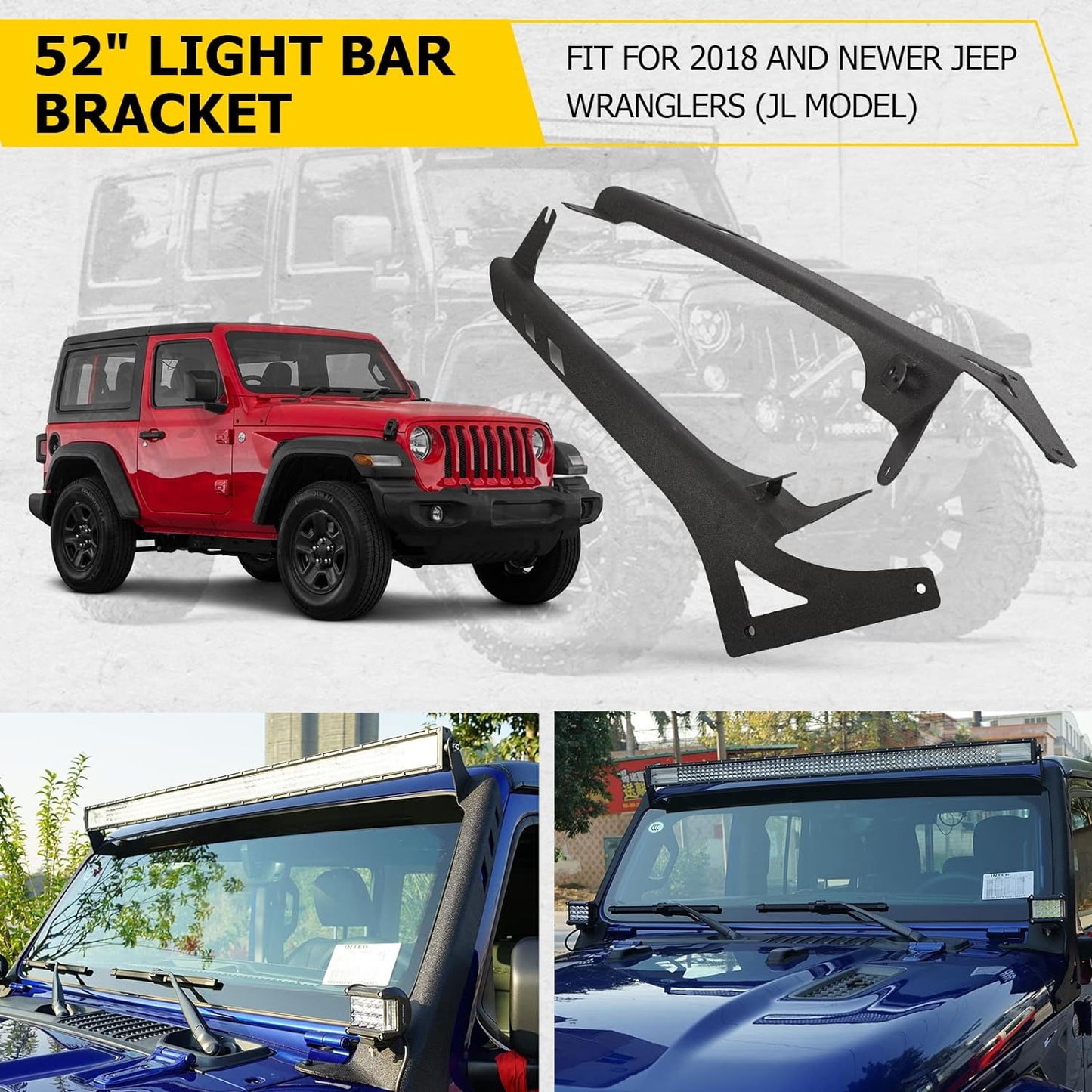 ●APPLICATION: This AUXMART windshield light frame for a 52-inch LED light bar & two cube lights have been specially designed for all 2018 2019 2020 2021 Jeep Wrangler JL / Gladiator JT models. Please note that lights are not included. Not fit for Jeep Wrangler Unlimited Rubicon 4x. Not fit for Jeep Gladiator Mojave.