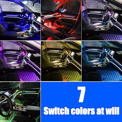 - Design: Come with 7 colors RGB car LED strip, built in sound-activated function and color technology, car led lights not only emit over 16 million colors but also sync to music and mic. You can create your own unique colors (Blinking, Flashing, Brightness, etc). Colors can dance with the rhythm of music or voice, making you feel like sitting in a music show scene.