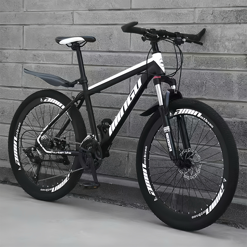 Black-White Bike | 26" Bike, 21 Speeds, High Carbon Steel, Detachable, Adjustable Seat, Chain Drive, 150kg Capacity, Dual Disc Brakes, Rigid Frame, Oil Spring Fork, Standard Type, Ordinary Pedals, Front And Rear Mechanical Disc Brakes