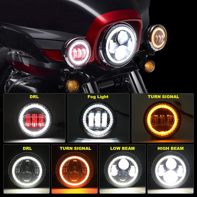 FITMENT: Compatible with any h.arley model with 7 inch stock headlight and 4-1/2 inch fog passing lamp. Compatible with Road King, Street Glide, Ultra Classic, Electra Glide, Heritage Softail, Softail Deluxe, Softail Slim, Fatboy, Switchback, Ultra Limited, Tri, CVO.