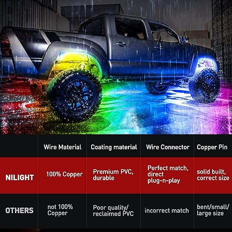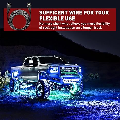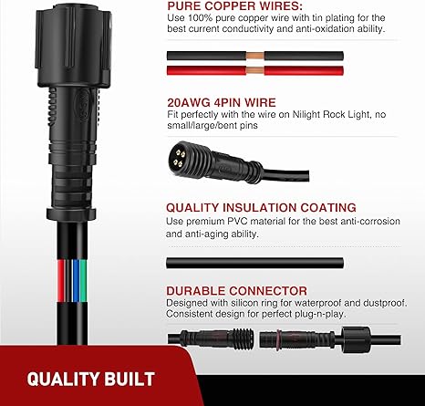 Provide extra ample wire for Nilight's RGB rock light connection on all kinds of offroad 4X4, ATV, UTV, SUV, Jeep, Truck, Motorcycle, Boat etc.