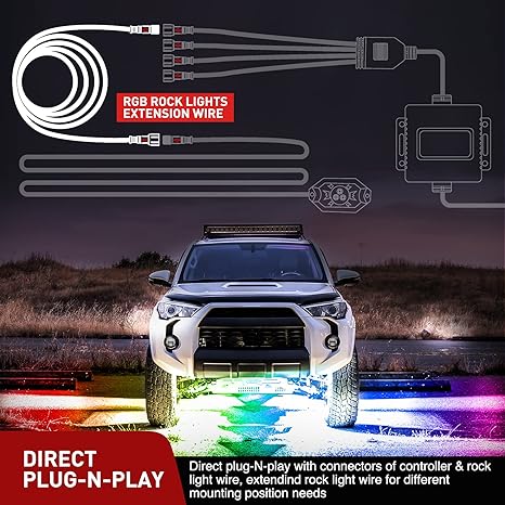 - Function: Directly plug-n-play with the wire connector on controller box and wire connector on rock light, extending rock light wire length and getting your full flexibility for different rock lights mounting position, even on a longer truck. No more worries of insufficient wire length.