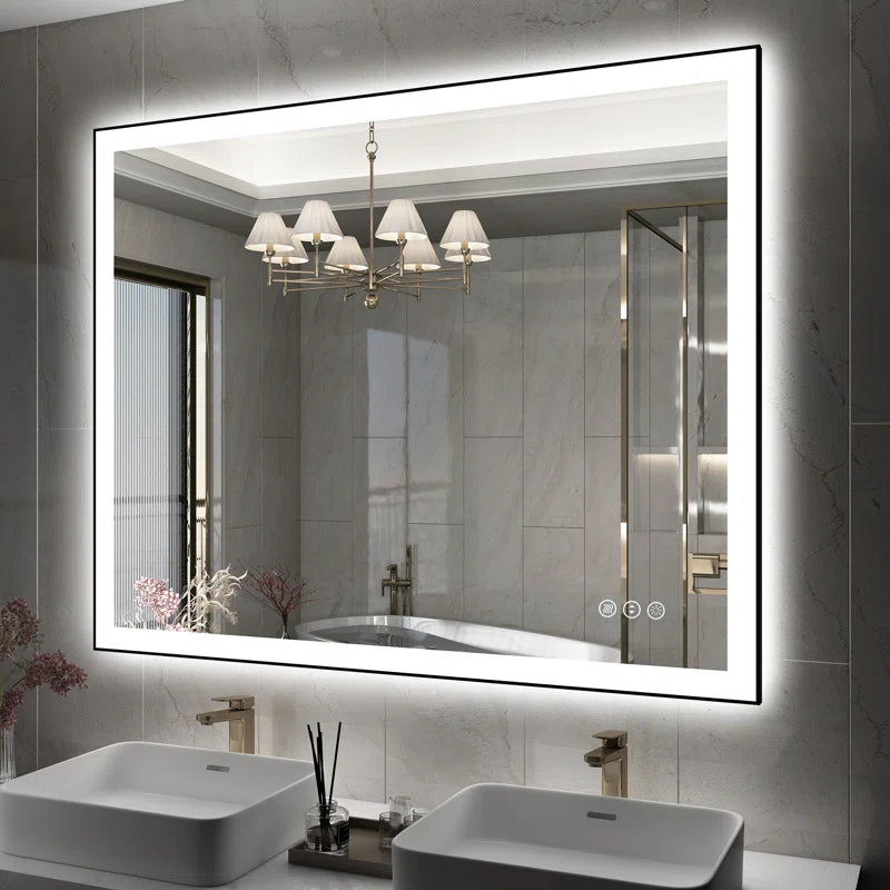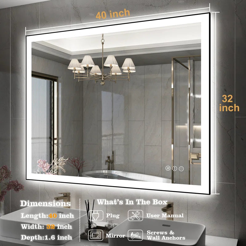 40" X 32" Detjon Black Framed Anti-Fog LED Lighted Dimmable Wall Mounted Bathroom Vanity Mirror