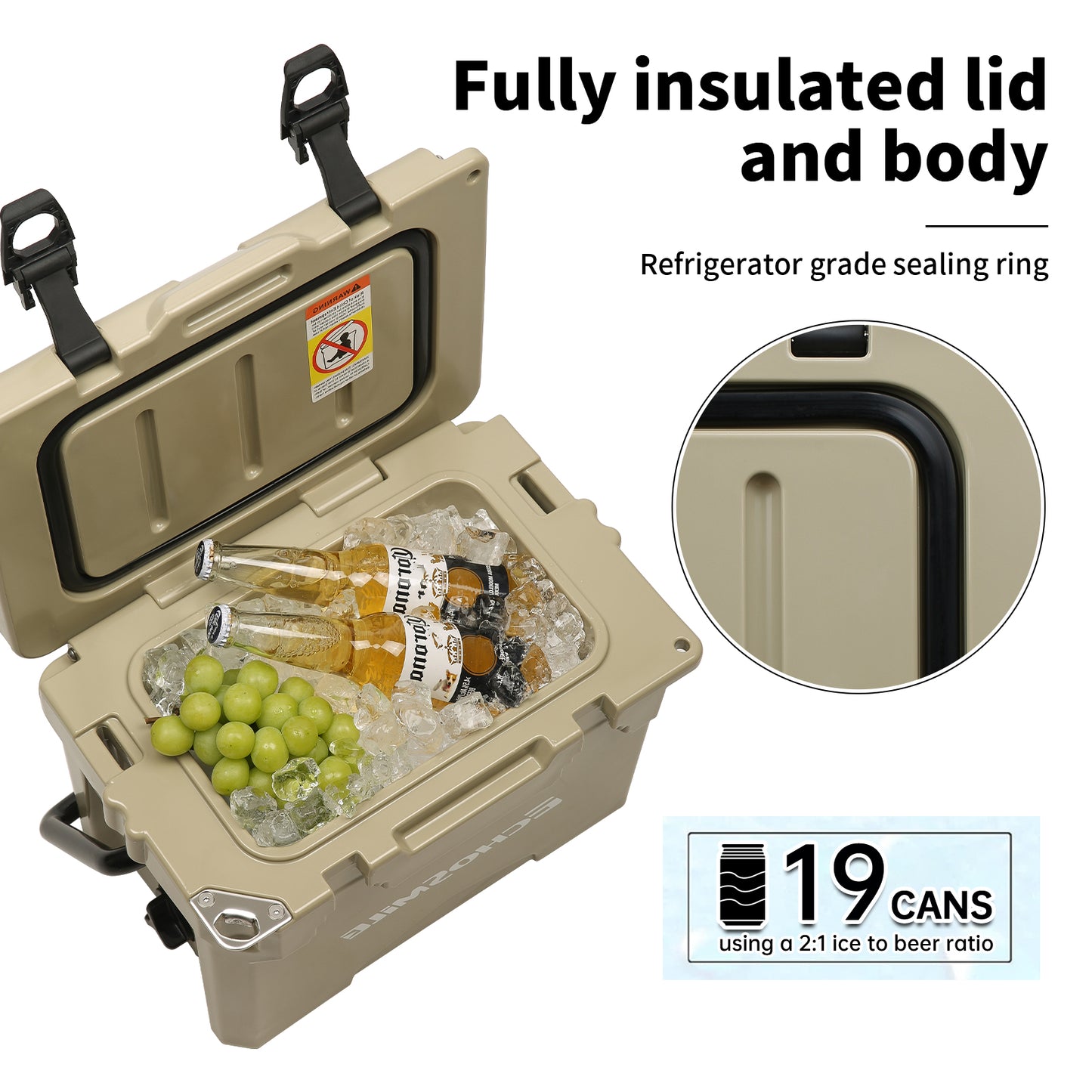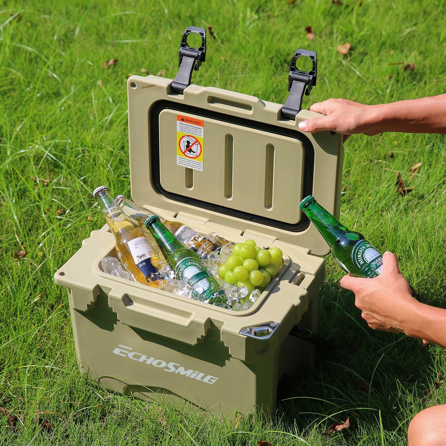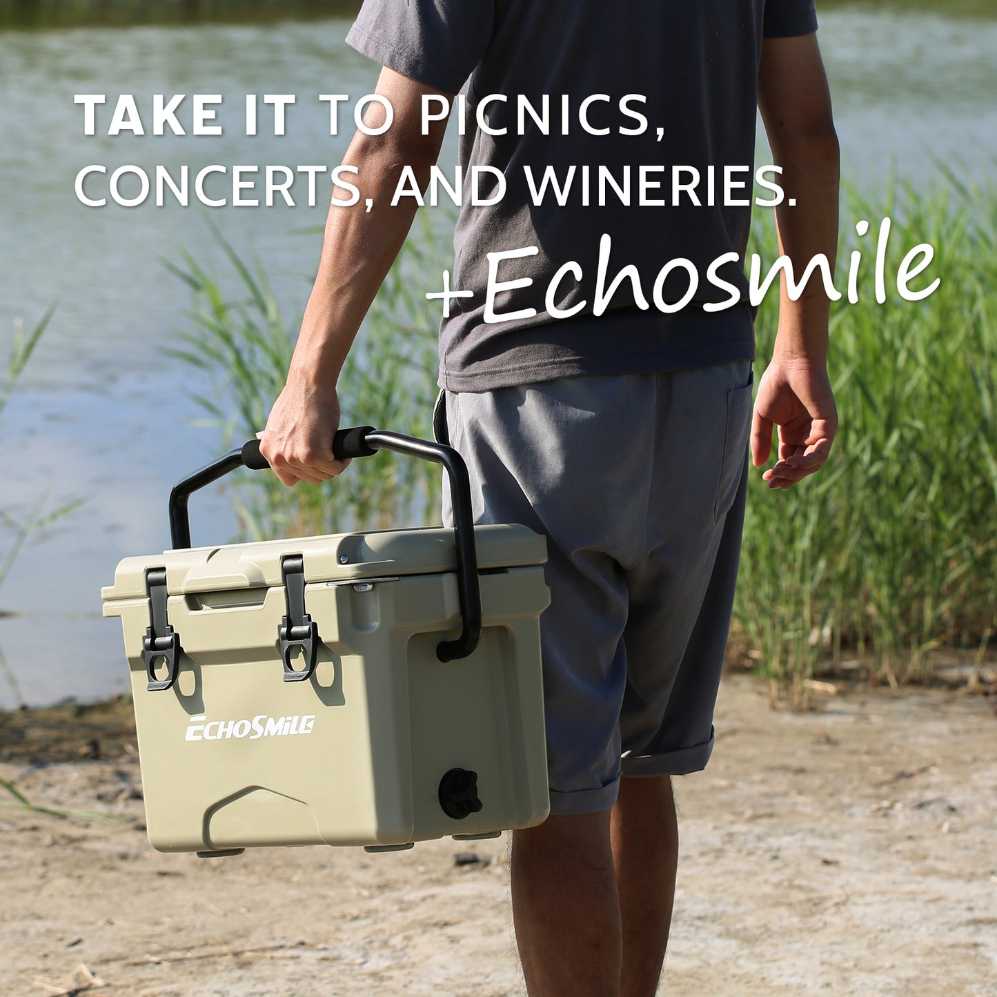1.Sturdy Rotomolded Design: EchoSmile Rotomolded cooler keeps cold for up to 5 days with recommended 2:1 ice-to-contents.Solid rotary mold ice chests and coolers, with classic surface color and natural luster, use LLDPE material, which is safe & environmentally, sturdy & anti-resistant.