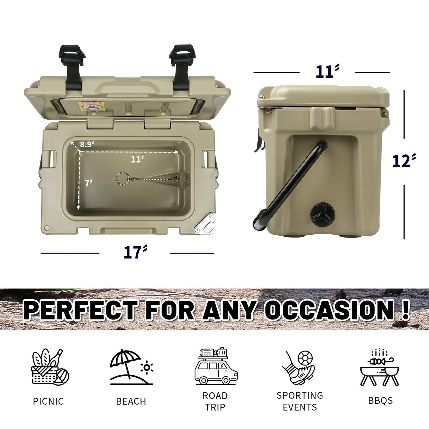 5.Convenience & Performance: Compact yet robust, this cooler is effortlessly portable with its ergonomic handle.Offering quick, single-handed access, it's the ultimate companion for your outdoor escapades.If you have any questions or need assistance with our cooler, please don't hesitate to get in touch.