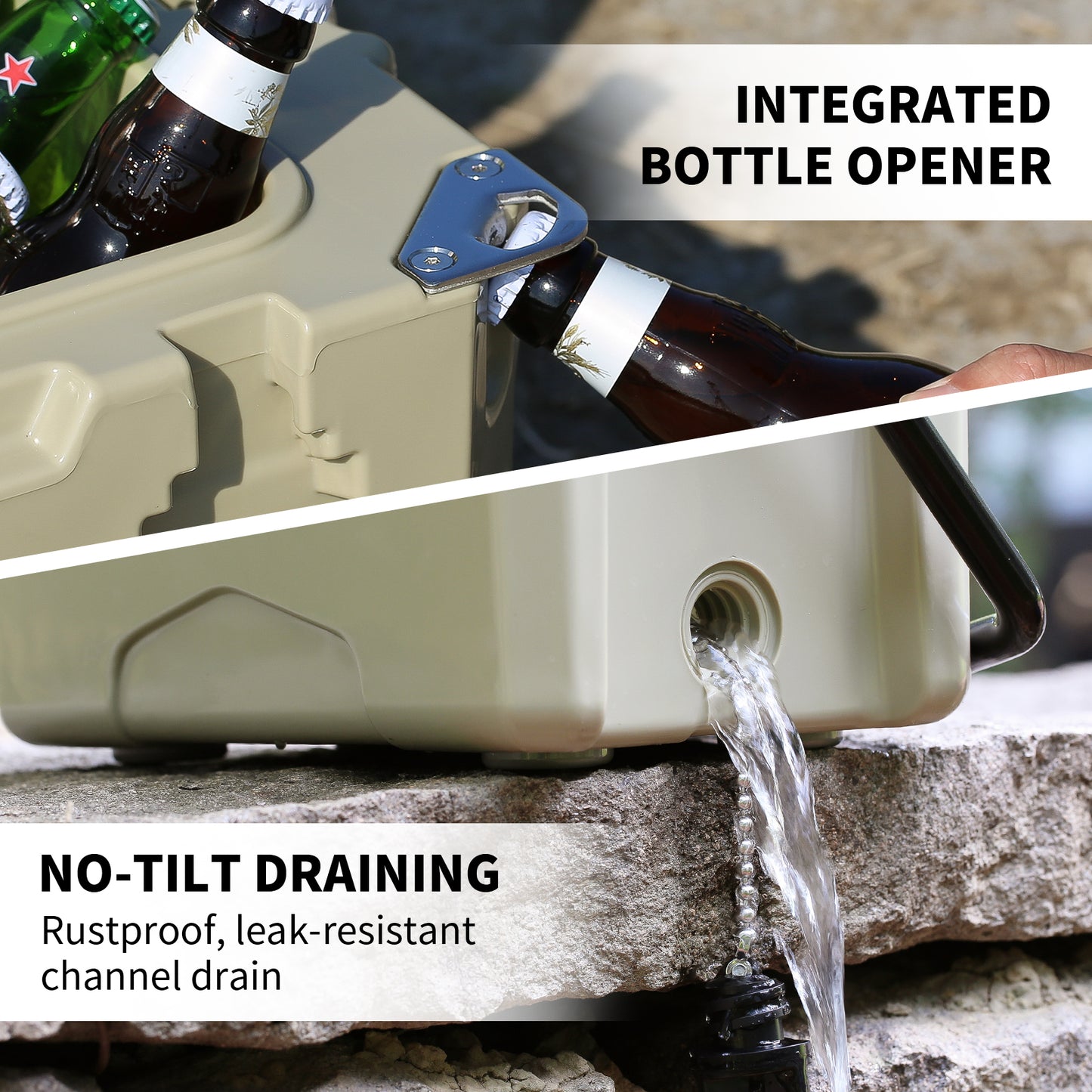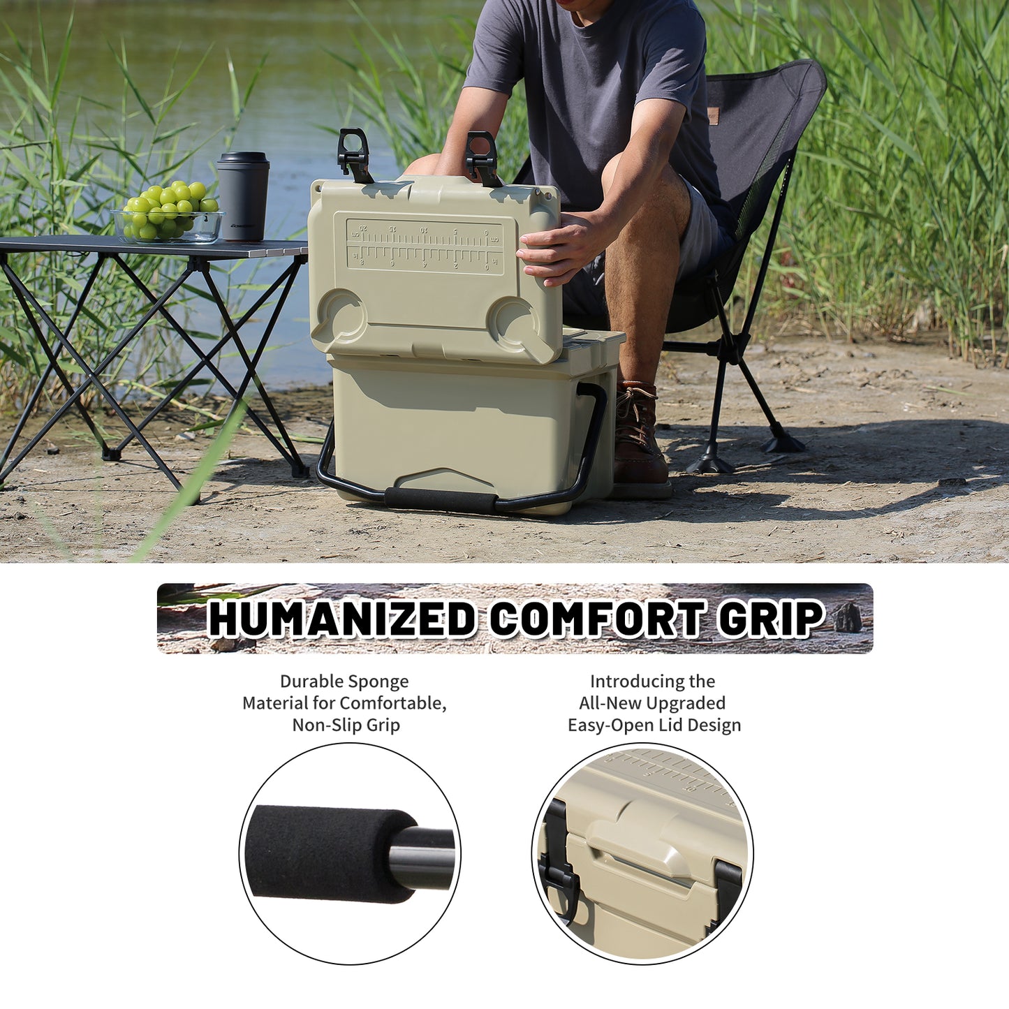 4.Built to Endure and More: Our rotomolded cooler's rugged design doubles as an additional seat or sturdy table.It can support up to 350 lbs, adding versatility to your outdoor experiences.