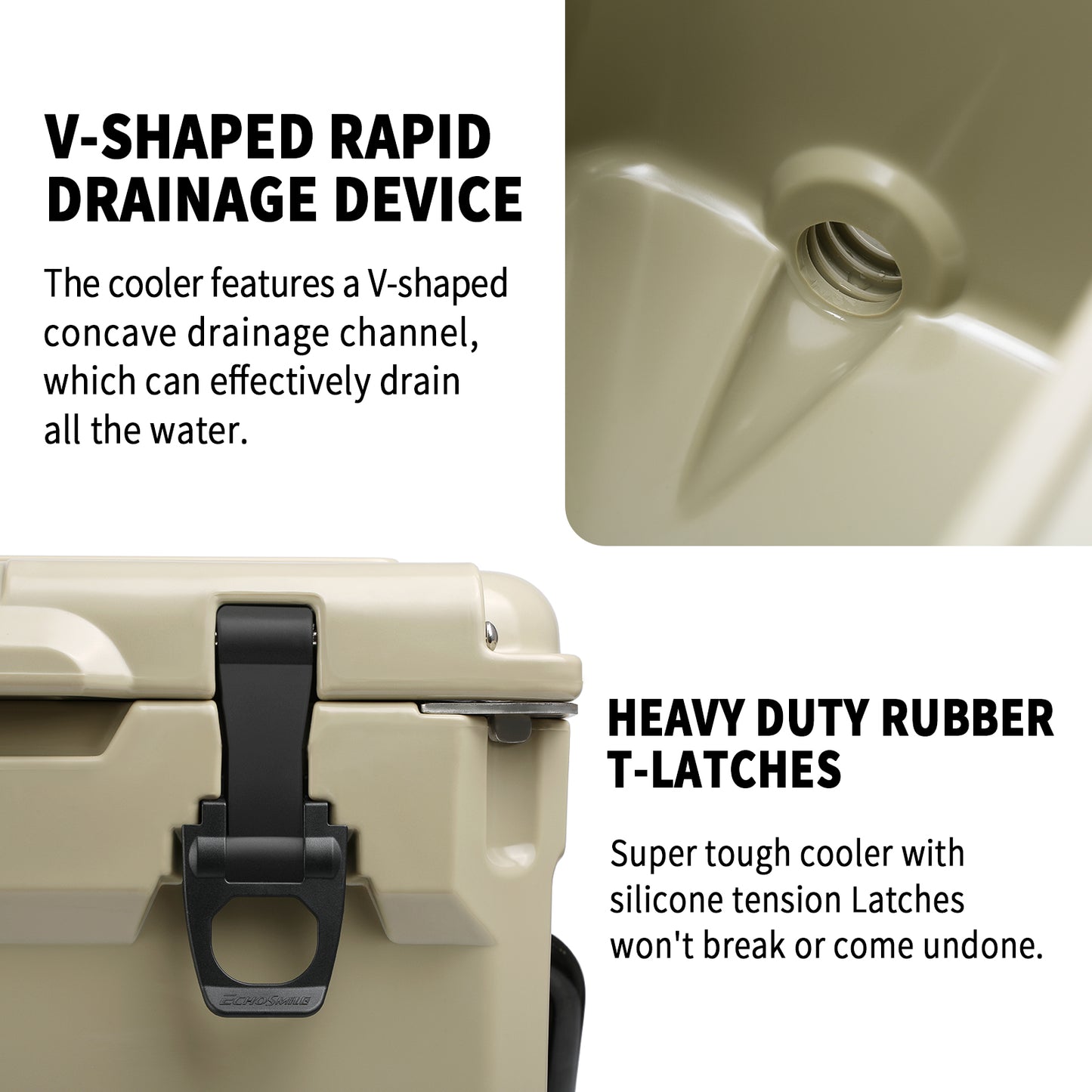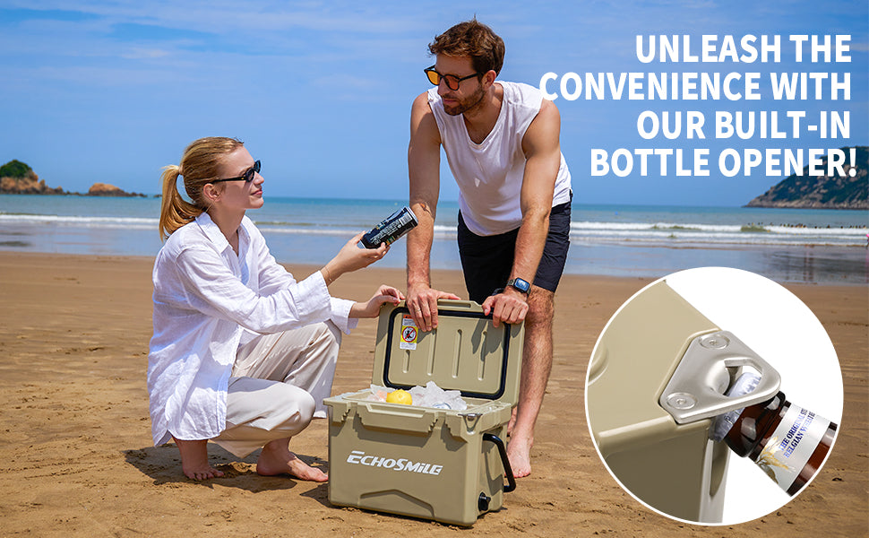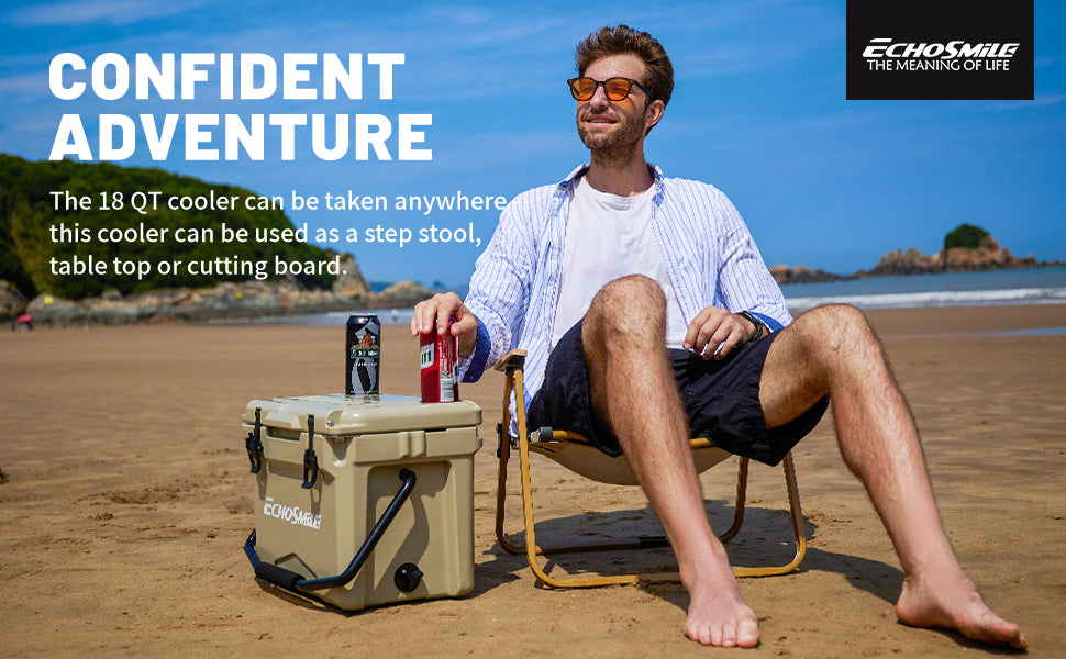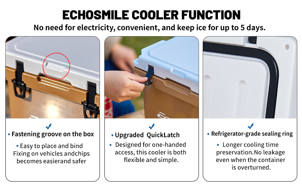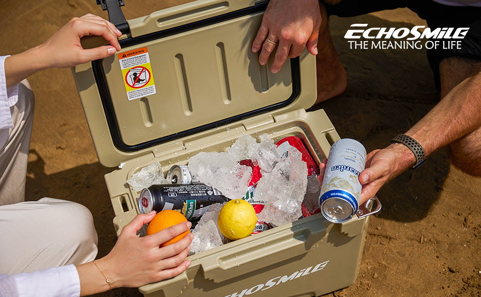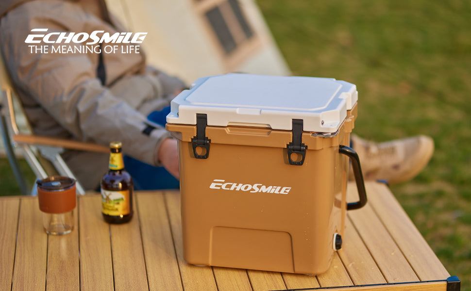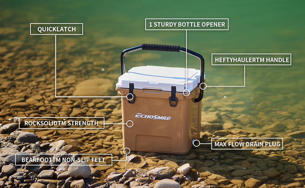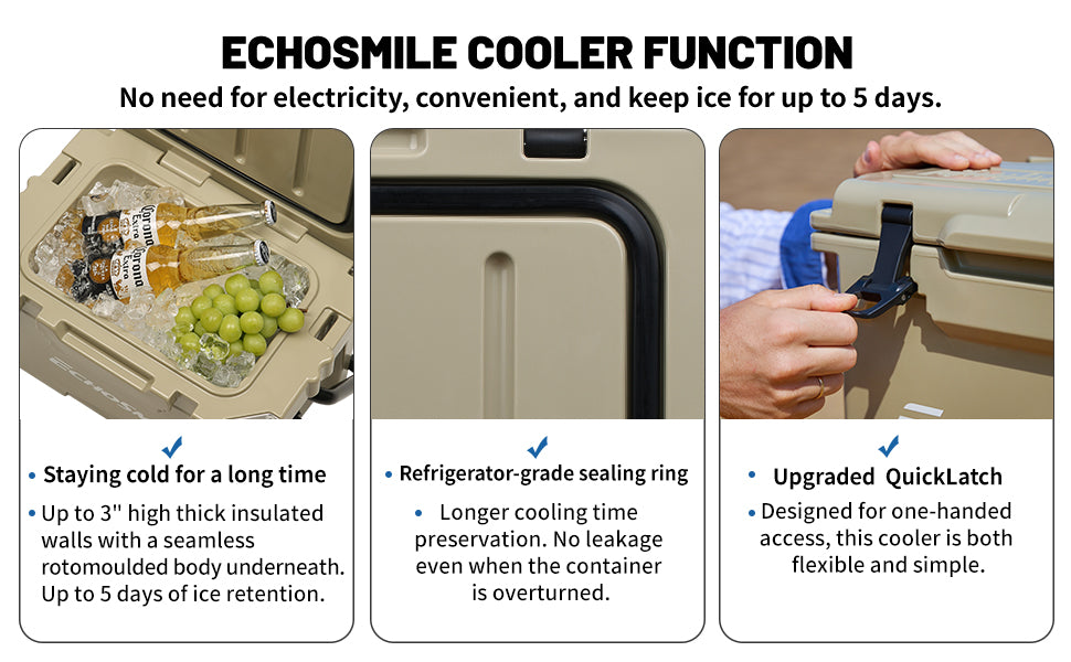 ① Sturdy Rotomolded Design: EchoSmile Rotomolded cooler keeps cold for up to 5 days with recommended 2:1 ice-to-contents.Solid rotary mold ice chests and coolers, with classic surface color and natural luster, use LLDPE material, which is safe & environmentally, sturdy & anti-resistant.