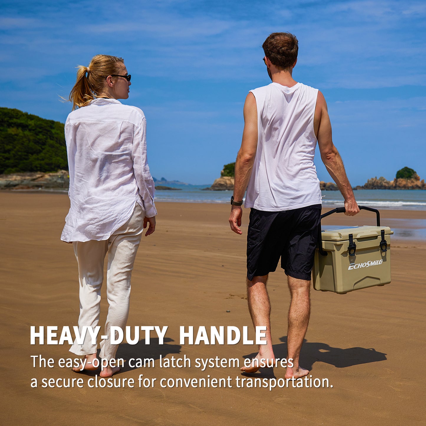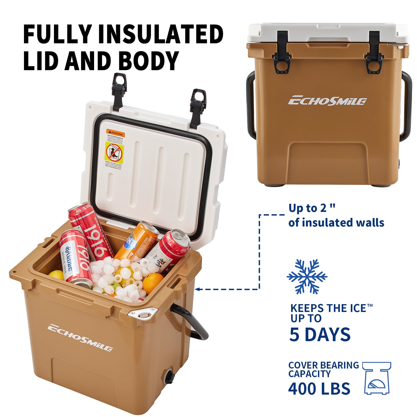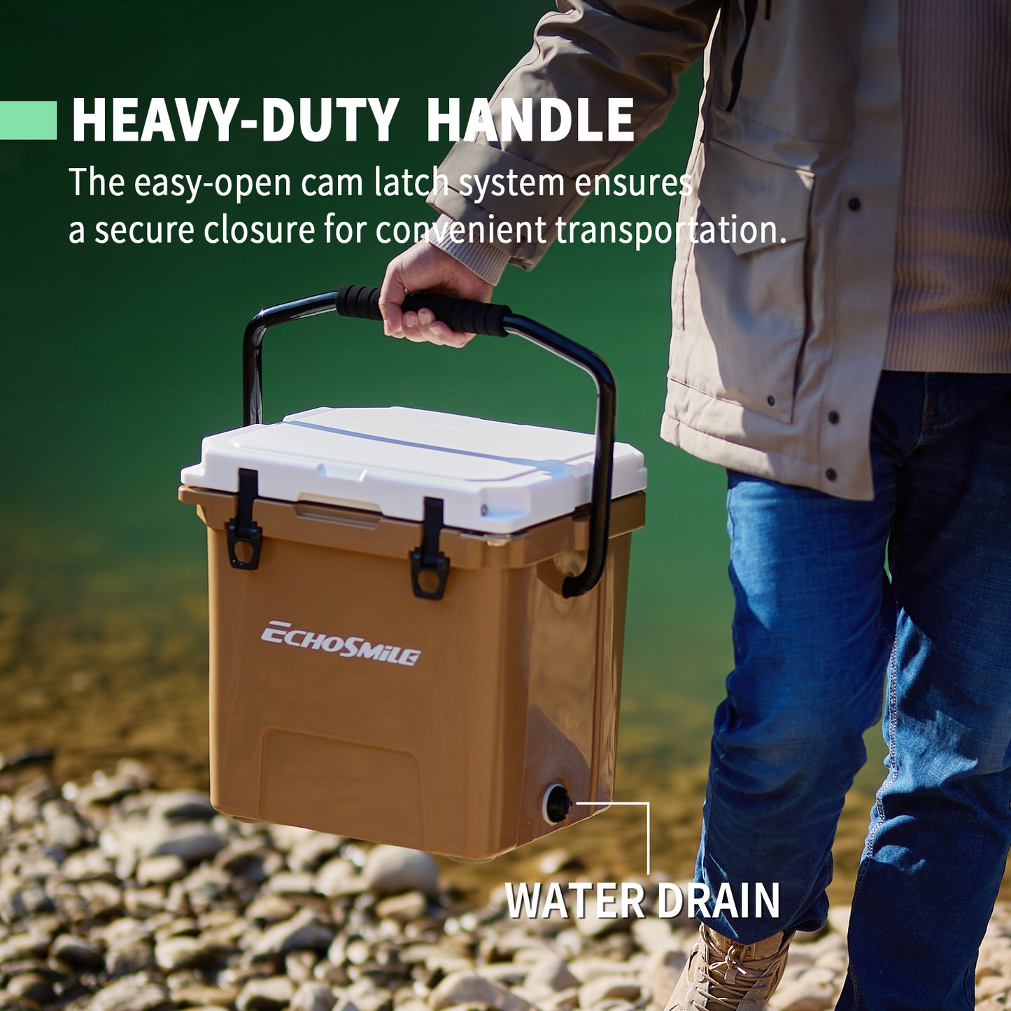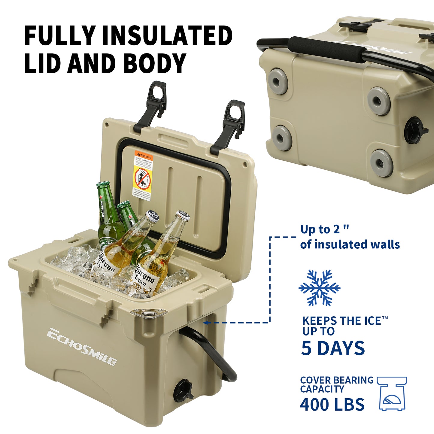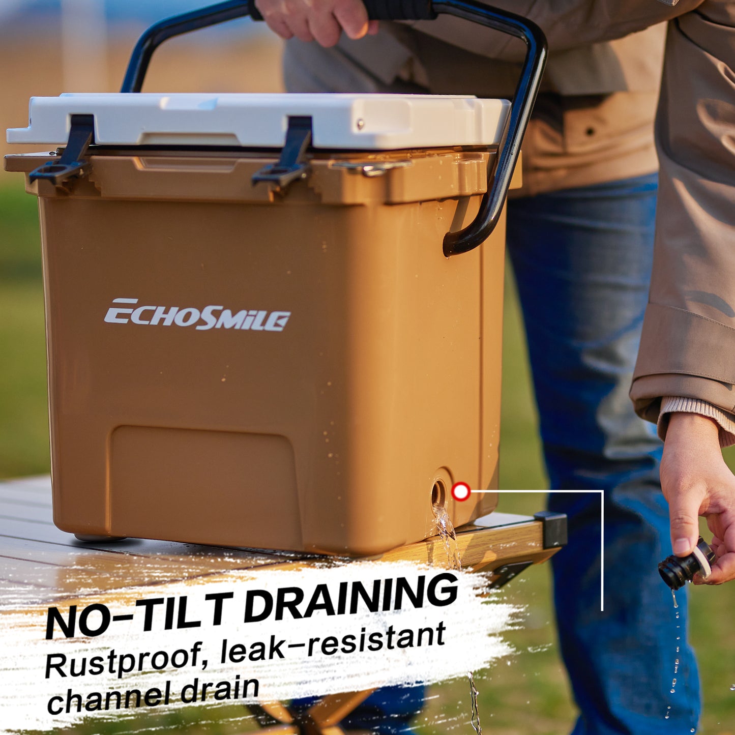① Sturdy Rotomolded Design: EchoSmile Rotomolded cooler keeps cold for up to 5 days with recommended 2:1 ice-to-contents.Solid rotary mold ice chests and coolers, with classic surface color and natural luster, use LLDPE material, which is safe & environmentally, sturdy & anti-resistant.
