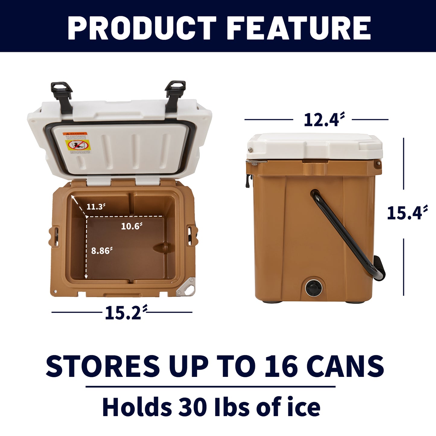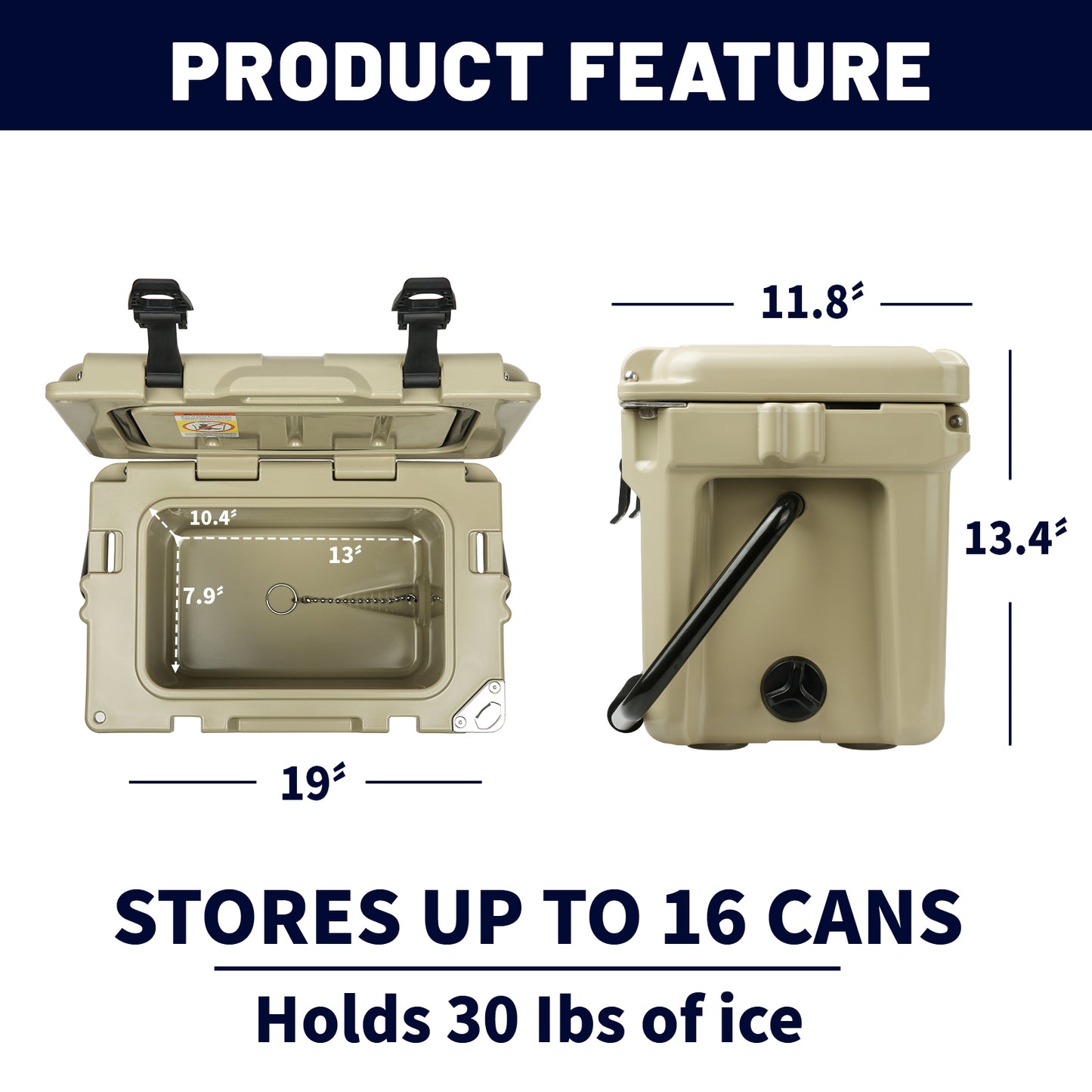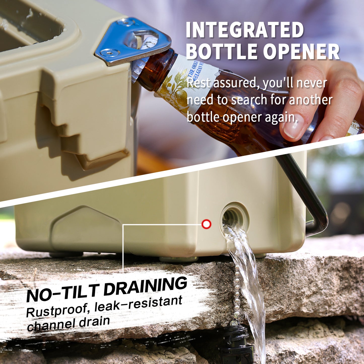 ③ Drain Plug Security: We've solved the issue of losing the drain plug. Attached with a handy chain, the drain plug cap is always within reach when it's time to drain the cooler. Enjoy effortless cleanup after your journeys.