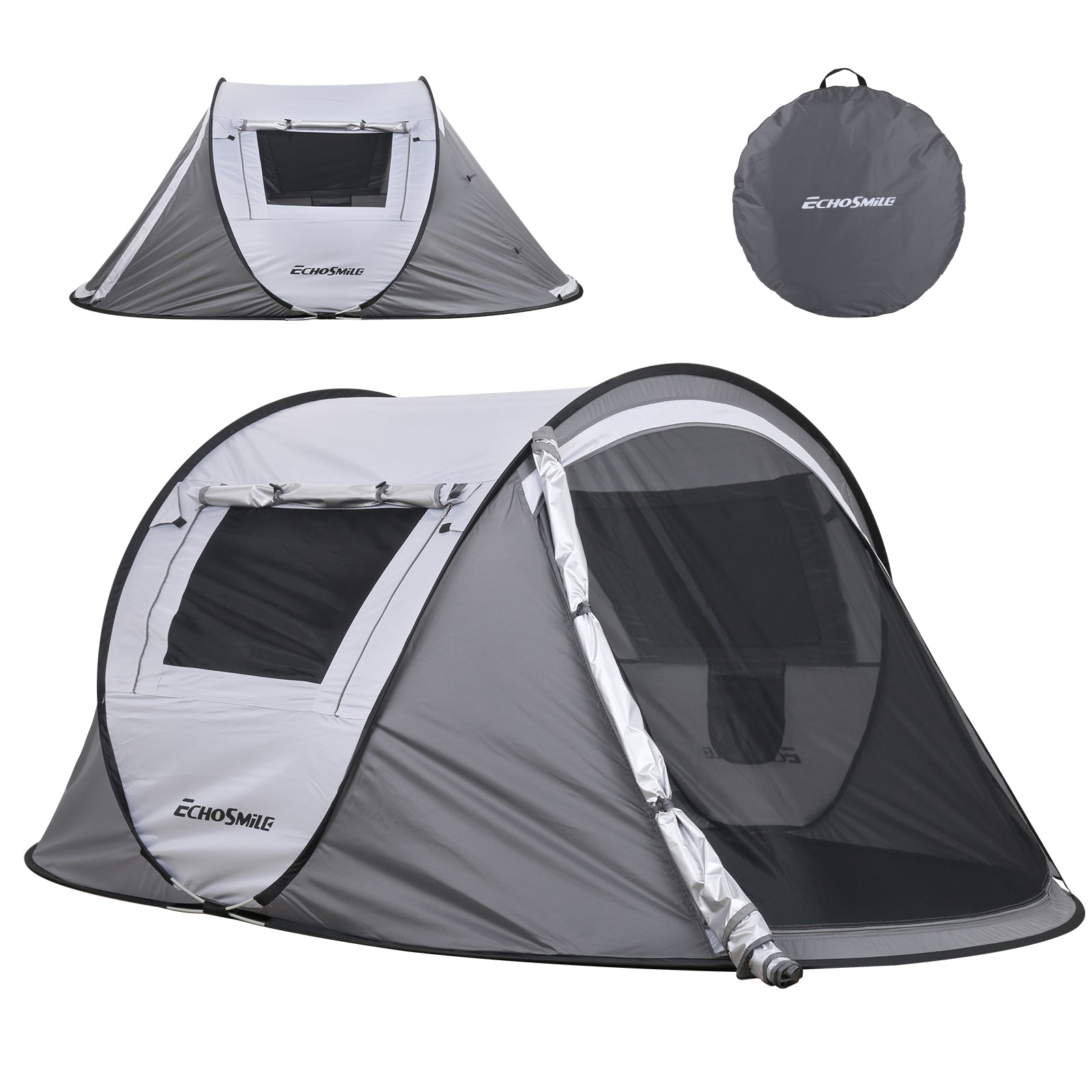 【QUICK & EASY SETUP】 Take the pop up tent out of the package, unstrap the tent, throw it into the air, it will be opened automatically in second. In just 10 seconds, our tent will bring you a pleasant camping experience.