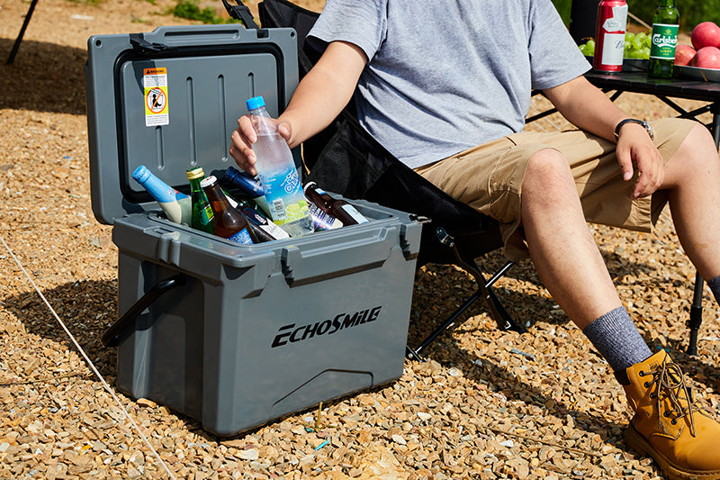 ① ICE RETENTION: EchoSmile Rotomolded cooler keeps cold for up to 5 days with recommended 2:1 ice-to-contents. The intermediate insulation layer is made of polyurethane so as to provide superior insulative and high strength. The silicone sealing ring seals the whole space to avoid heat convection and prolong the cryopreservation time.