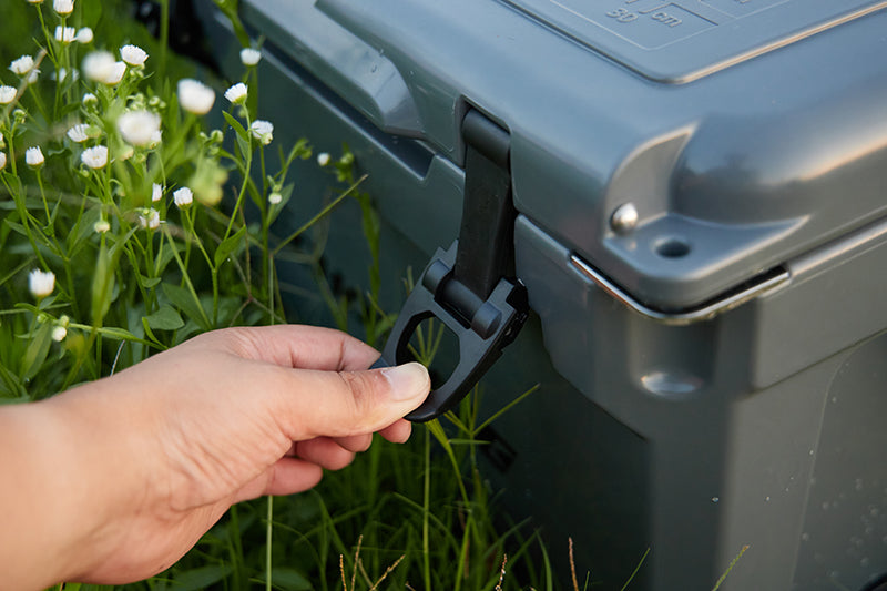 ④ ALL DETAILS: Silicon tension latches do not break easily or come loose automatically. UV inhibitors protect the cooler against sun damage. Anti-slide rubber feet help to keep stable. 2 impact rubber absorbing ergonomic grips on each side help easier moving. The drain plug allows you to remove water without turning the cooler upside down.