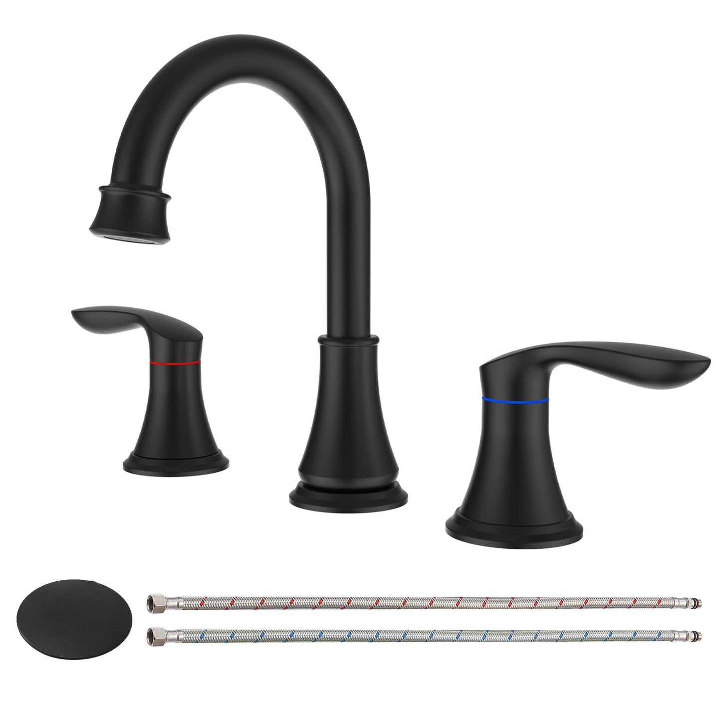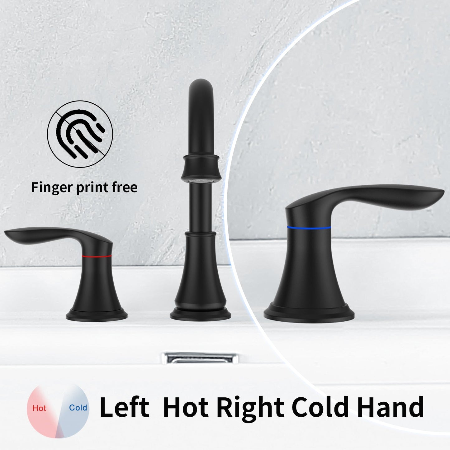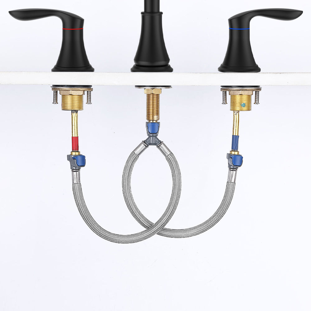 - Double Handle Neat Design -The brushed gold bathroom faucets handle design has an exquisite appearance and can be rotated forward 90° rotated, 3-hole mount with 8-inch widespread design, control the water temperature and flow precisely, worthy to buy the bathroom sink faucet.