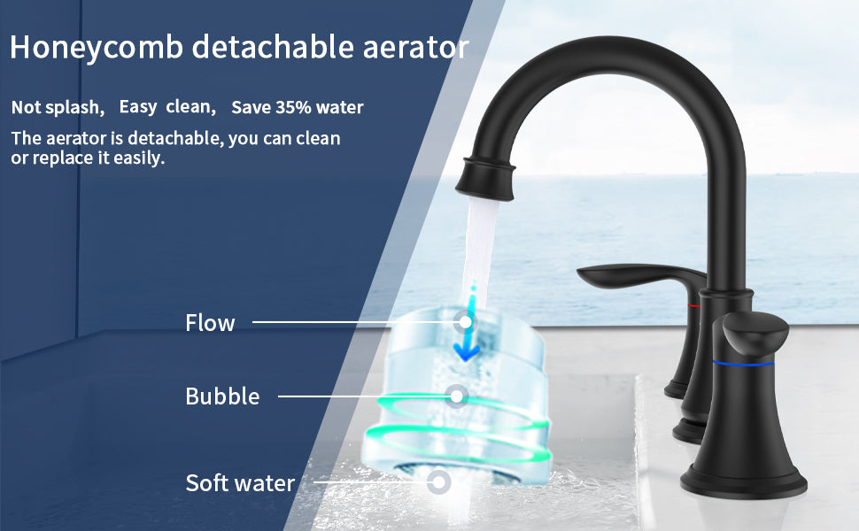 Simple maintenance, just use your fingers to wipe away the minerals on the surface, and the bathroom faucet also can provide a stable aeration flow.