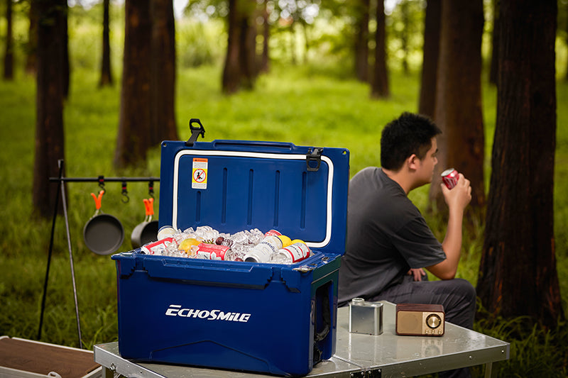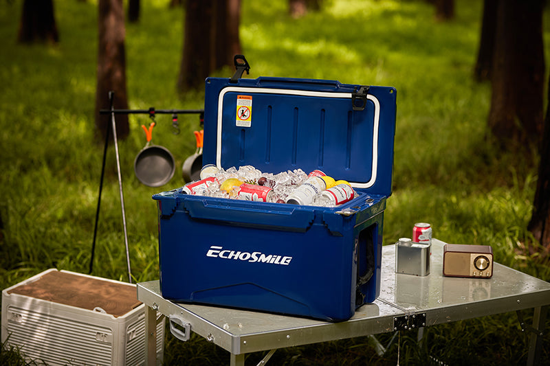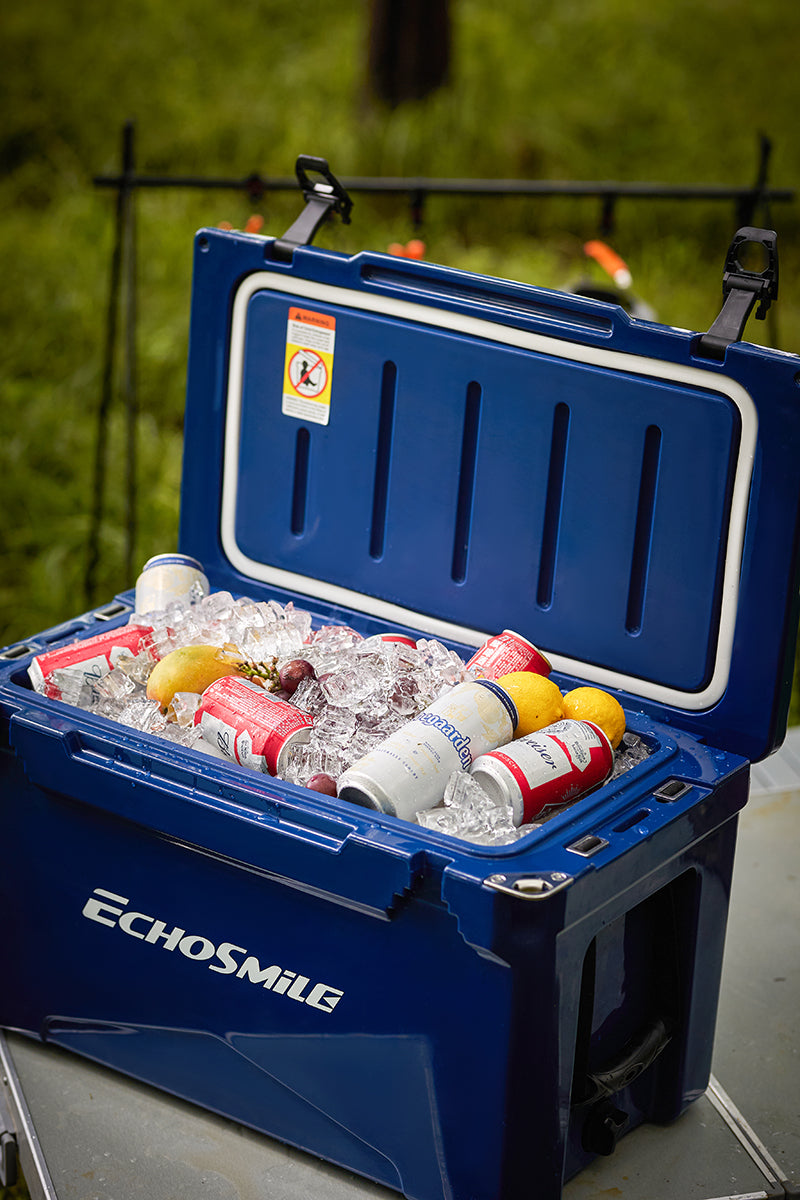 ① ICE RETENTION: EchoSmile Rotomolded cooler keeps cold for up to 5 days with recommended 2:1 ice-to-contents. The intermediate insulation layer is made of polyurethane so as to provide superior insulative and high strength. The silicone sealing ring seals the whole space to avoid heat convection and prolong the cryopreservation time.