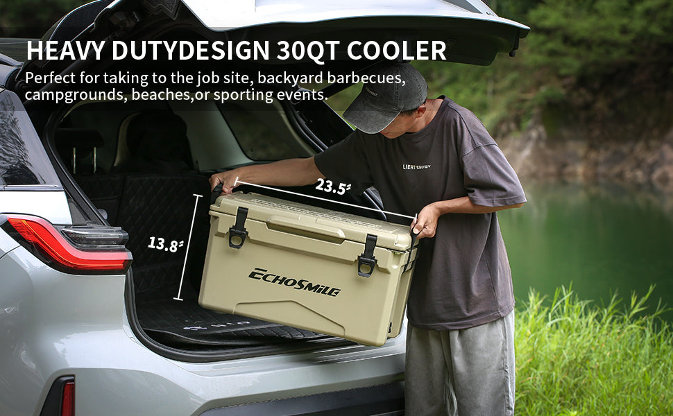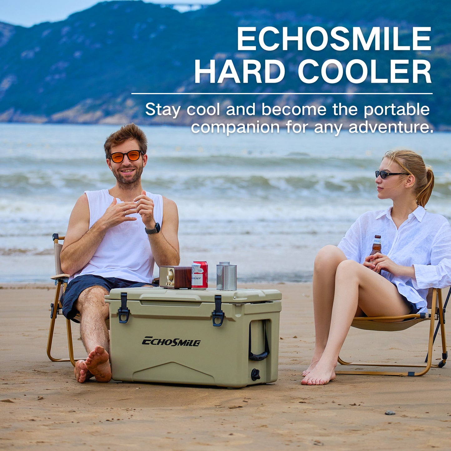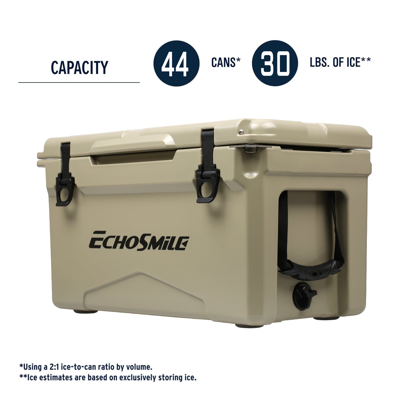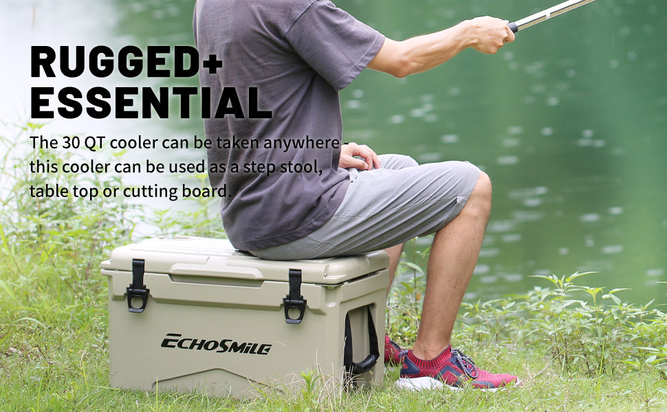 ① ICE RETENTION: EchoSmile Rotomolded cooler keeps cold for up to 5 days with recommended 2:1 ice-to-contents. The intermediate insulation layer is made of polyurethane so as to provide superior insulative and high strength. The silicone sealing ring seals the whole space to avoid heat convection and prolong the cryopreservation time.