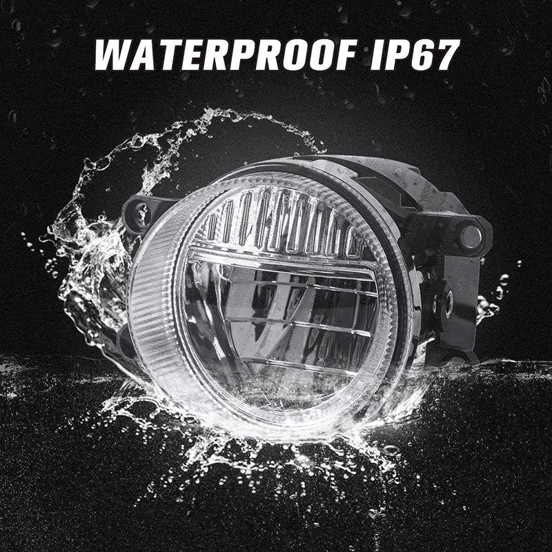 - Superior Construction: Built-in EMC guarantees no flicker issue. Die-cast aluminum housing for fast heat dissipation. Tough PC lens, IP67 waterproof will enable the fog lights to work under any harsh environment, making the lifespan up to 50,000 hours.