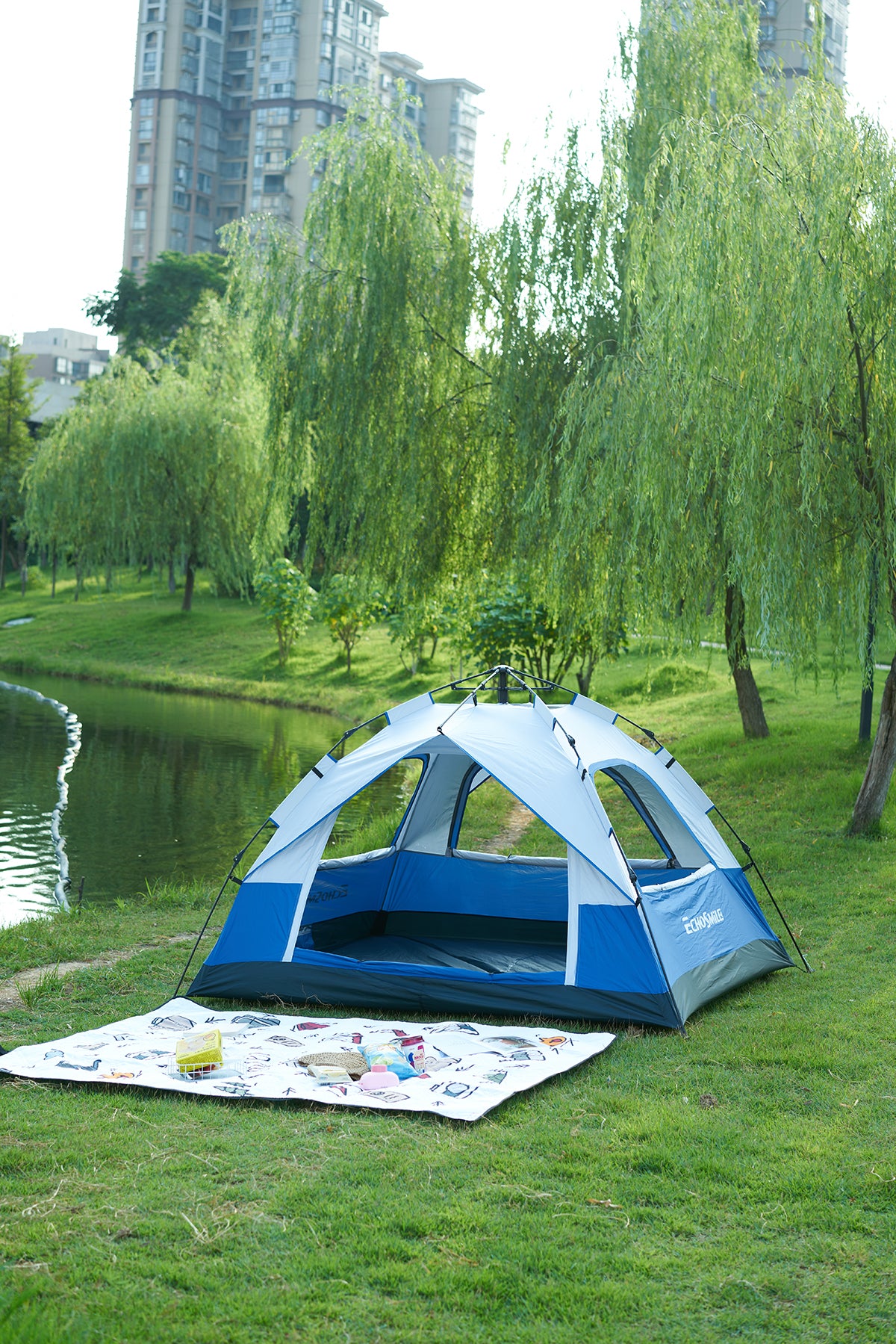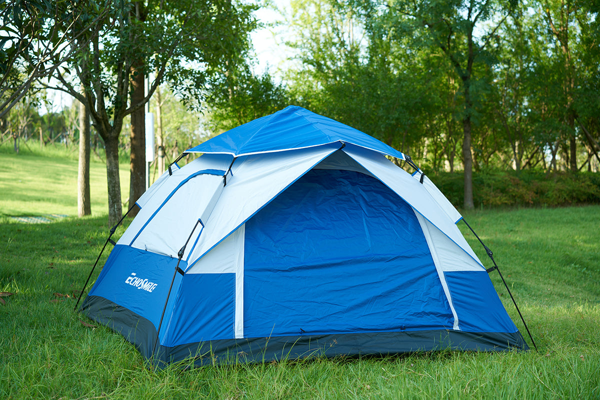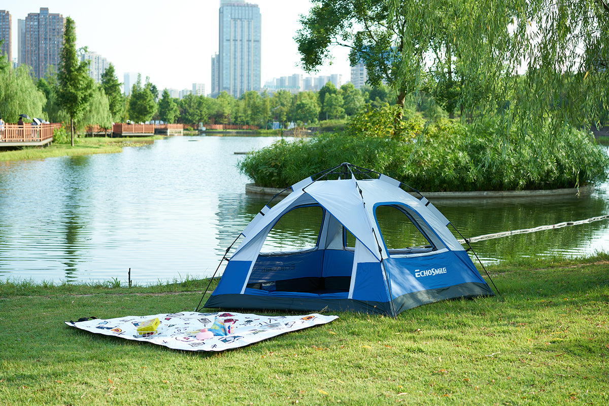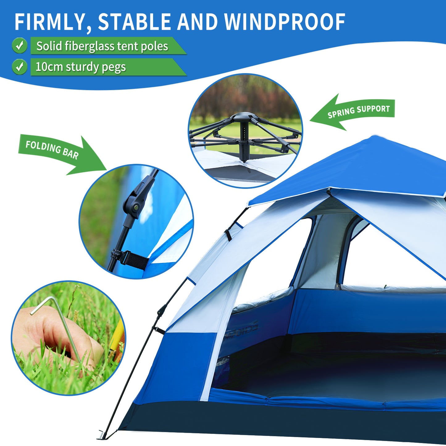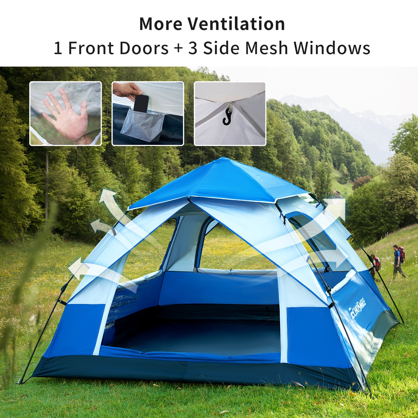 ③Waterproof and UV Protection: The EchoSmile easy setup tent features 190T PU polyester fabric and 2000mm PU coating, effectively preventing water from seeping into the tent. With UPF 50+ sun protection and durable fiberglass poles, it's perfect for adventurous trips.