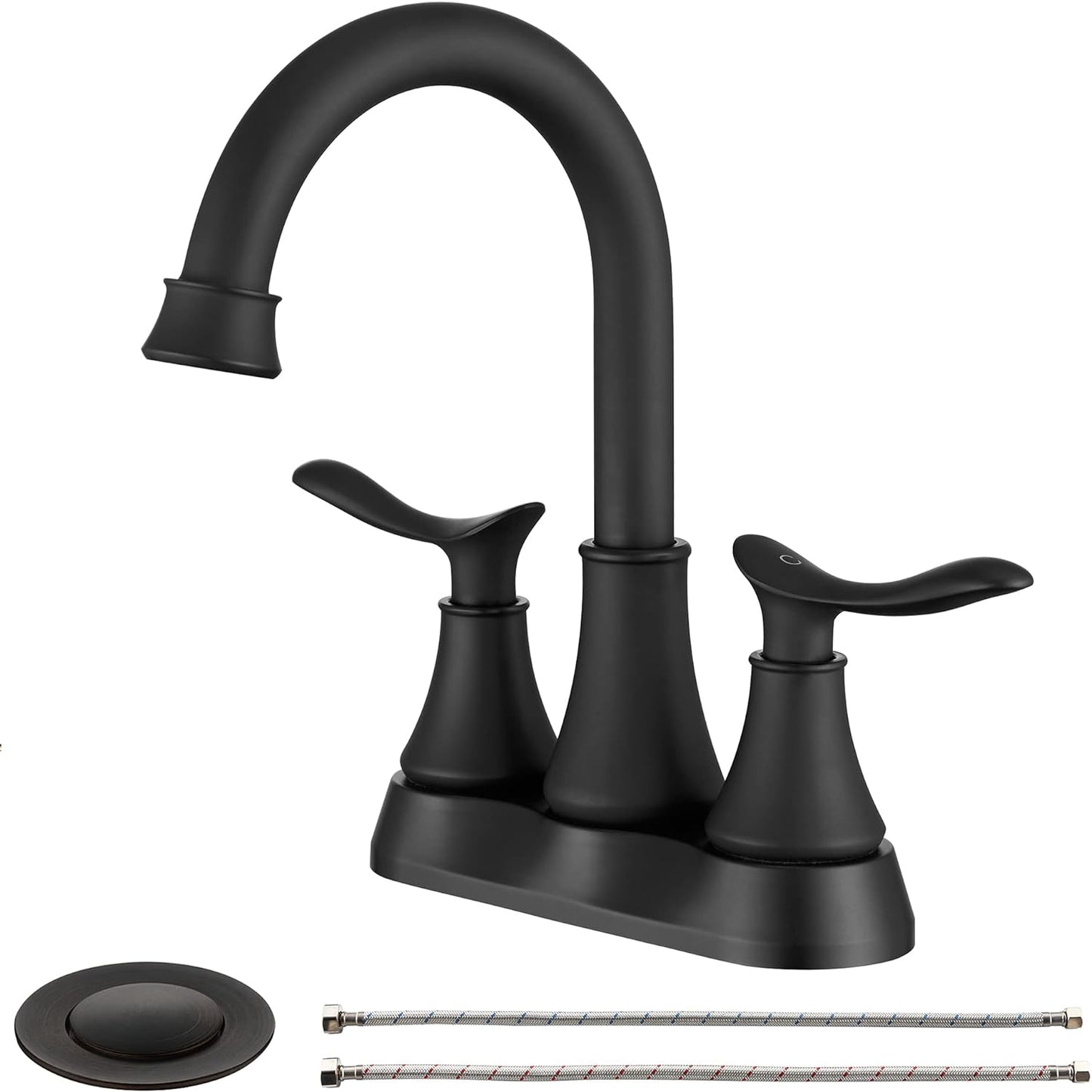 4009B-MB | Bathroom Faucet Matt Black with Pop-up Drain & Supply Hoses 2-Handle 360 Degree High Arc Swivel Spout Centerset 6 Inch Vanity Sink Faucet