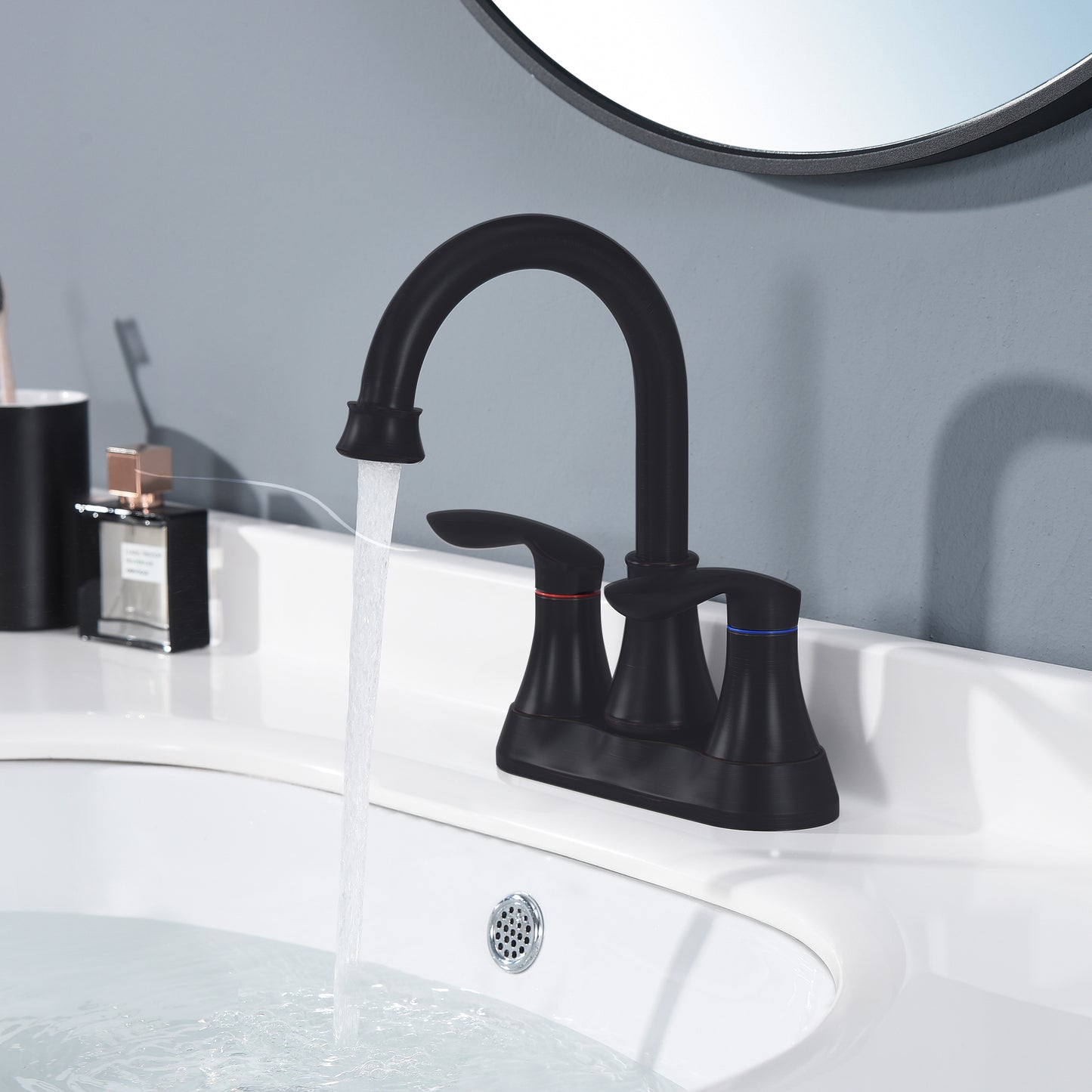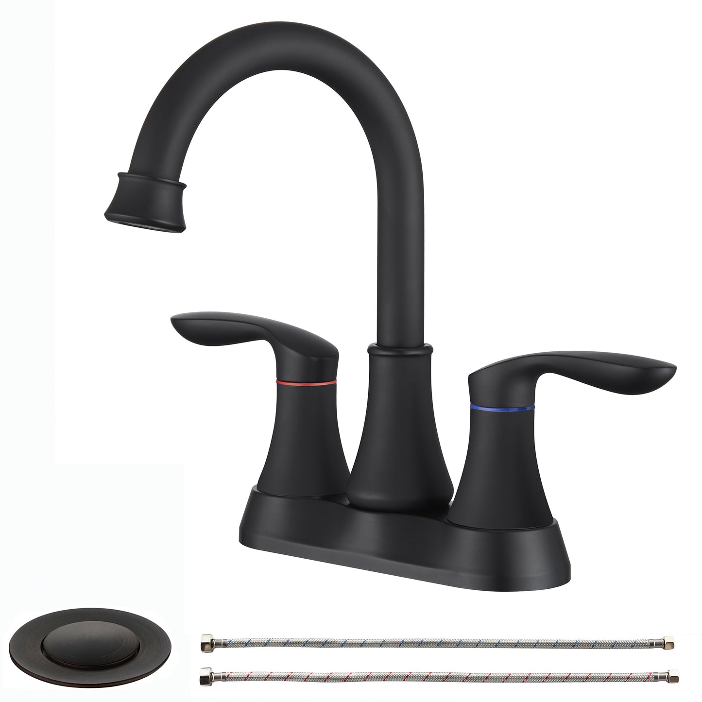 4011B-MB | Bathroom Faucet Matt Black with Pop-up Drain & Supply Hoses 2-Handle 360 Degree High Arc Swivel Spout Centerset 6 Inch Vanity Sink Faucet 4011B-MB