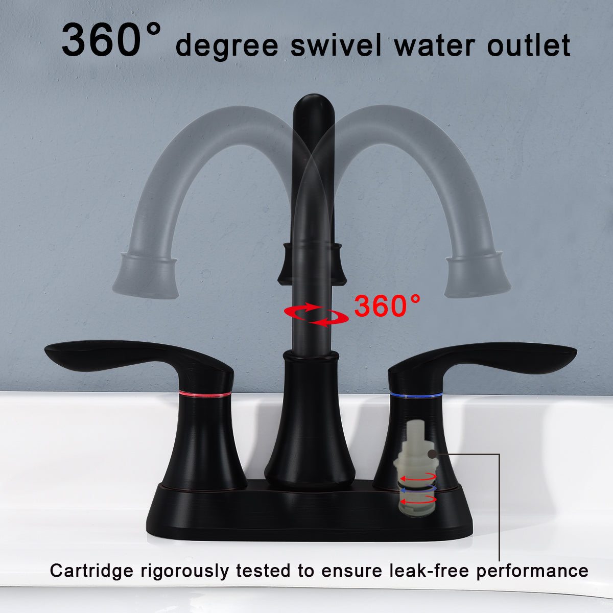 - 💧【 TWO-HANDLE METAL LEVER 】- Two handle lever bathroom faucet design for precise control in both volume and water temperature. The handle torque can reach up to 18MM, which greatly extends the handle life (The current industry standard is 9MM). The high-quality ceramic & copper cartridge has passed 500,000 cycles of water tightness test to ensure that the matt black bathroom faucet is stable.