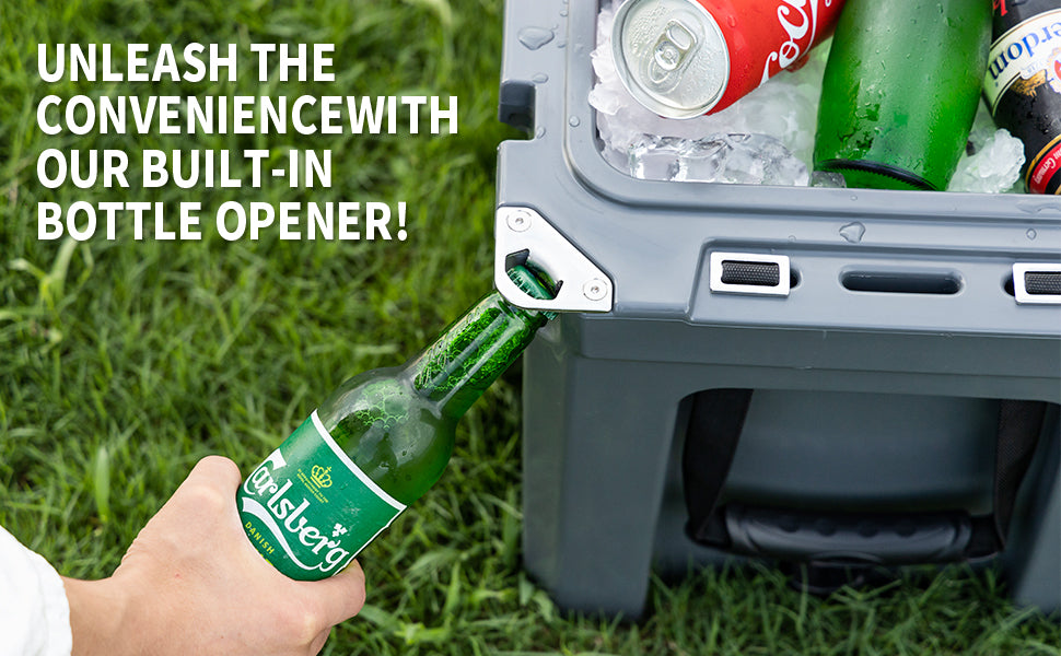 ③ STURDY ROTOMOLDED CONSTRUCTION: Solid rotary mold ice chests and coolers, with classic surface color and natural luster, use LLDPE material, which is safe & environmental-friendly, sturdy & anti-resistant, inside(food grade) and outside(UV resistance).