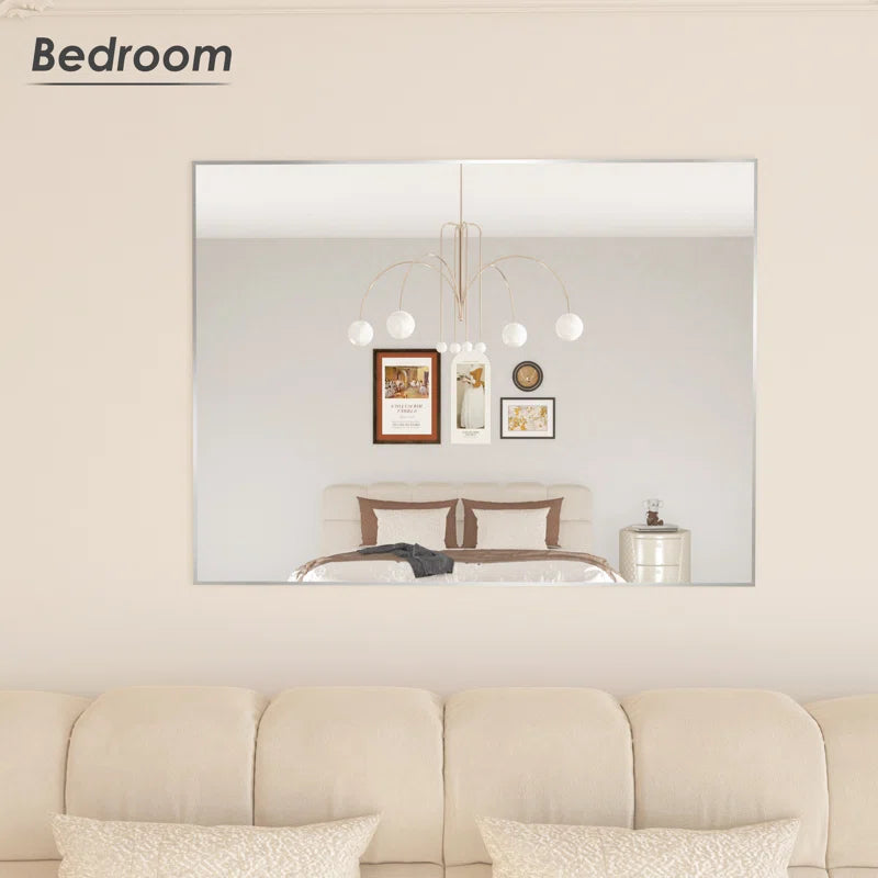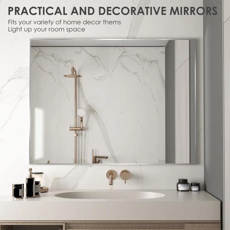 48" x 36" (Silver) Lesamuel Wall Mounted Vanity Mirror w/ Aluminum Frame for Bedroom, Entryway, Living Room