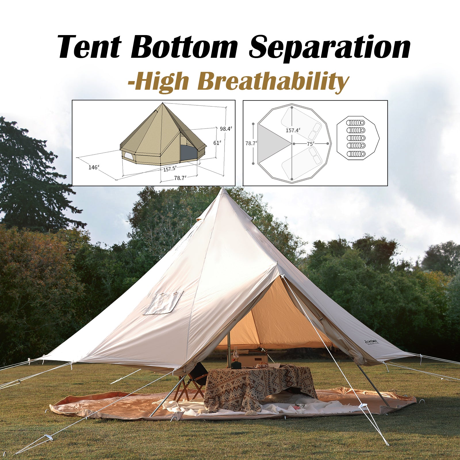 【GOOD VENTILATION】 The windows & doors with Double Panels, 4 Mesh windows and 2 doors provide optimal airflow for cross ventilation while keeping the bugs out. The front and back doors let you in and out easily, and you can zip up the inner and outer doors.