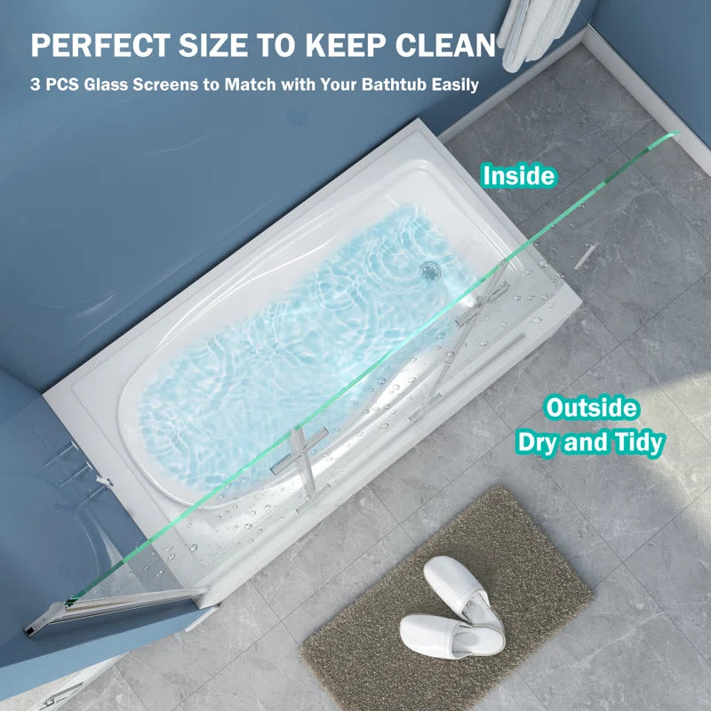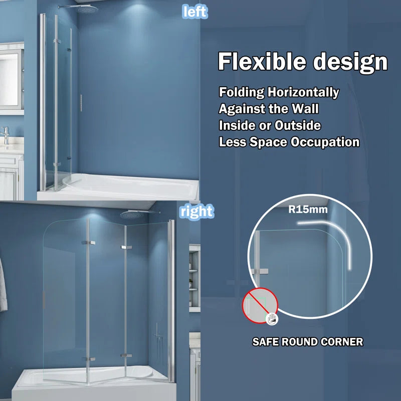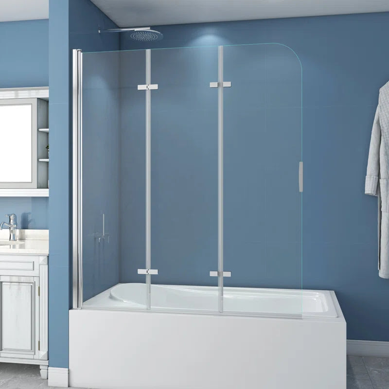 51" W x 59" H Three Plates Folding Tub Door Bathtub Screen with Clear Glass