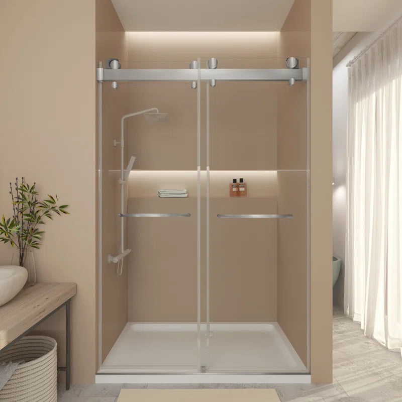60" W x 79" H Frameless Double Sliding Door Shower Door With Closing System