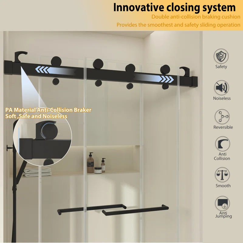 60" W x 79" H. Double Sliding Door Shower Door With Closing System