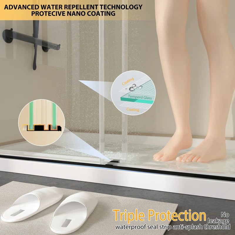 - These frameless shower doors with bottom and side seal strips effectively prevent splashes and leaks from escaping the enclosure, achieving a dry and wet separation environment, and keeping the rest of your bathroom clean and tidy.