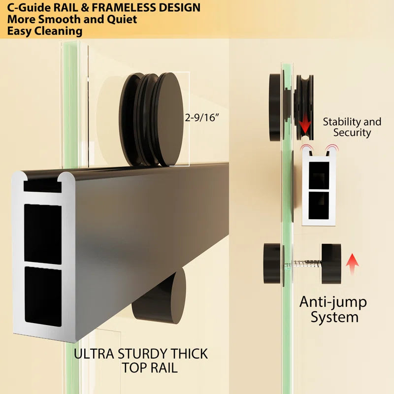 - The top support track with extra large bearing capacity offers a stable structure and high safety. Rollers and pulls with an anti-jump system create effortless sliding operation. Two different innovative safe closing systems offer for you to choose from.