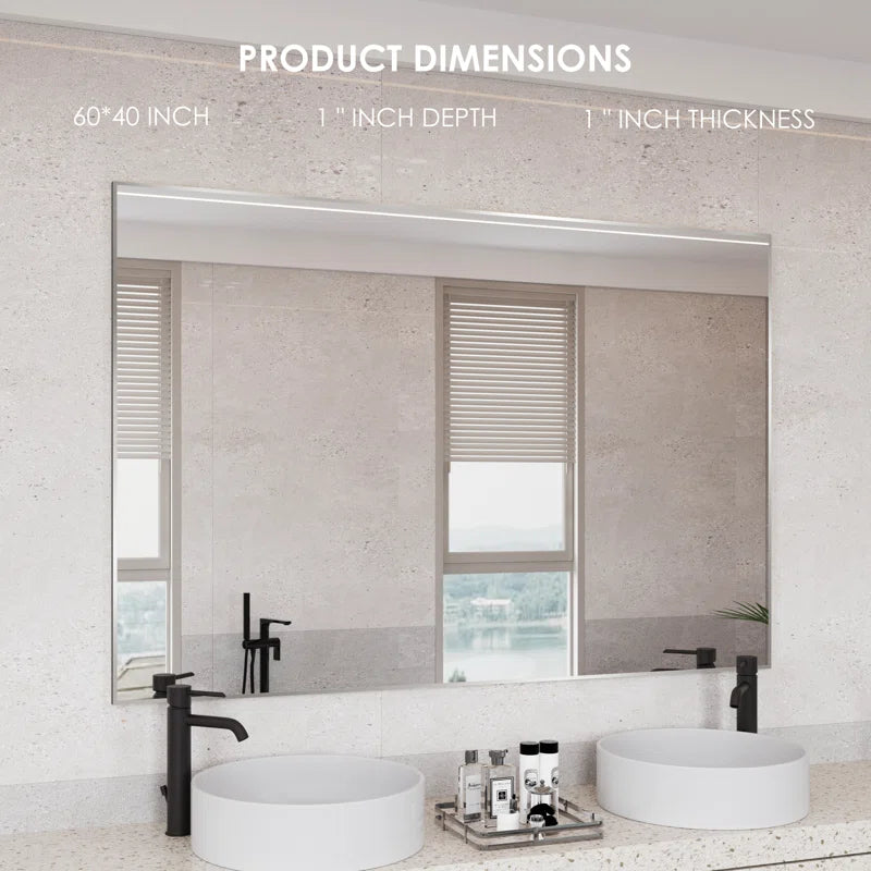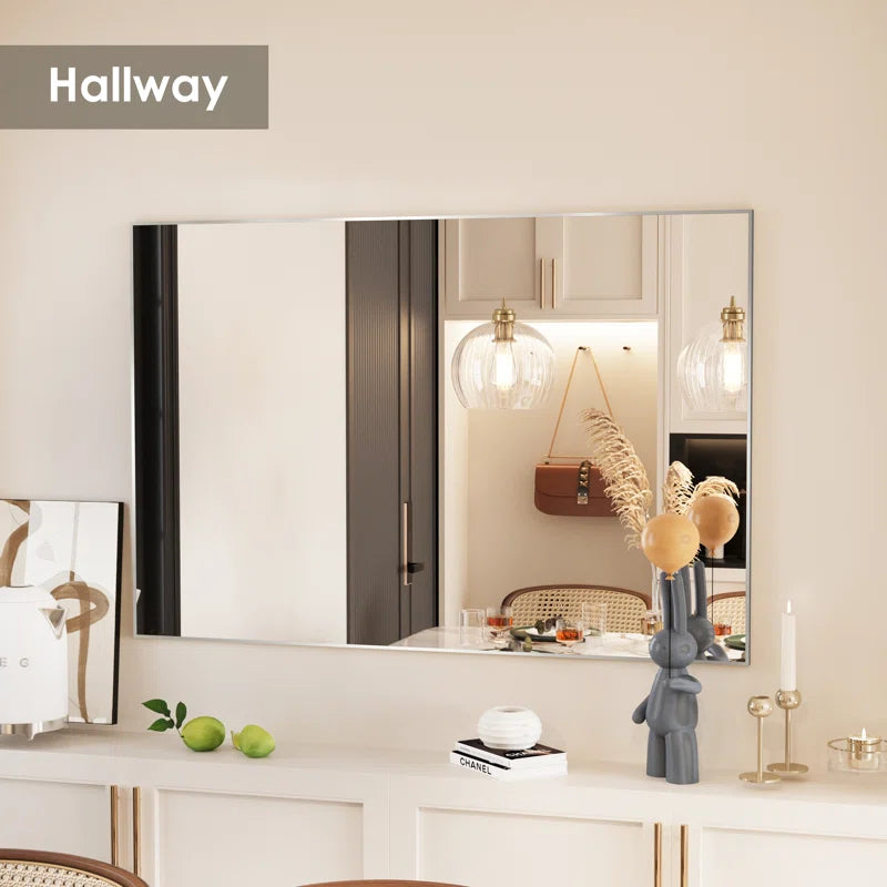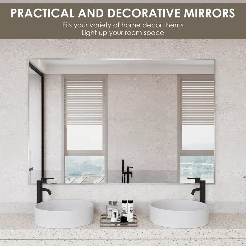 60" x 40"(Silver)Lesamuel Wall Mounted Vanity Mirror w/ Aluminum Frame for Bedroom, Entryway, Living Room