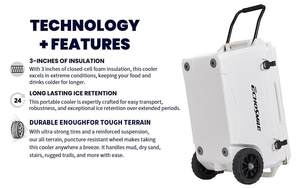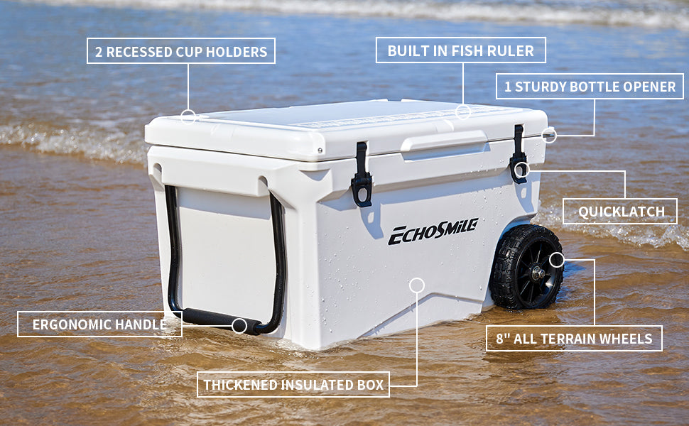 2.8-Inch Rubber Wheels: Equipped with 8-inch rubber wheels, our coolers provide easy transport over various terrains, enhancing convenience.