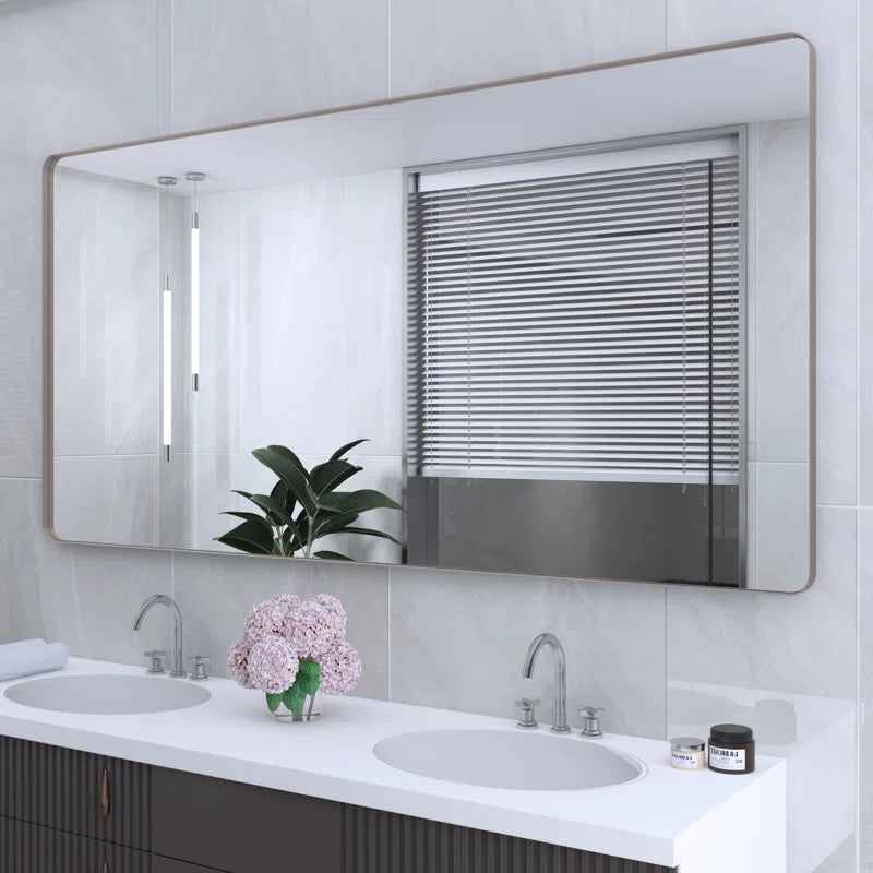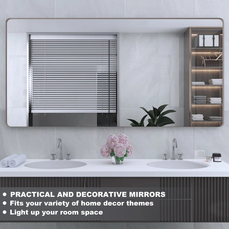 72" x 36" (Silver) Filleted Corner Wall Mounted Mirror, Bathroom Mirror, Vanity Wall Mirror With Metal Frame