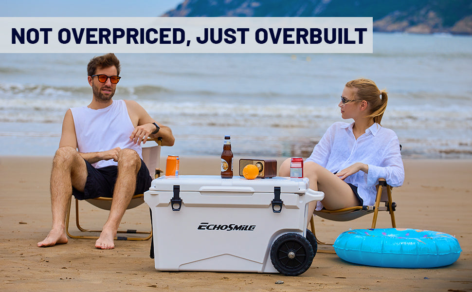① ICE RETENTION: EchoSmile Rotomolded cooler keeps cold for up to 5 days with recommended 2:1 ice-to-contents. The intermediate insulation layer is made of polyurethane so as to provide superior insulative and high strength. The silicone sealing ring seals the whole space to avoid heat convection and prolong the cryopreservation time.