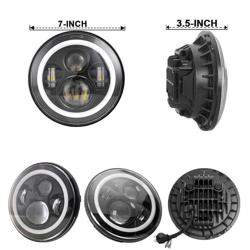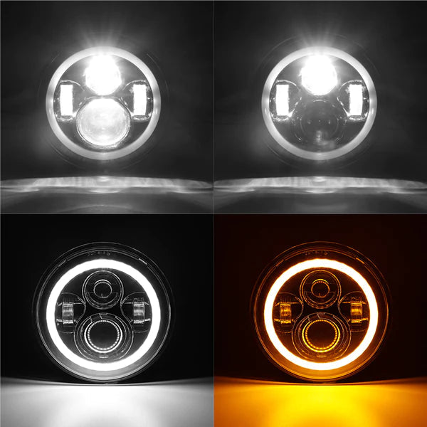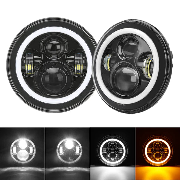 7inch Headlight With White-Yellow Halo Chrome Color –Black Box in Pairs