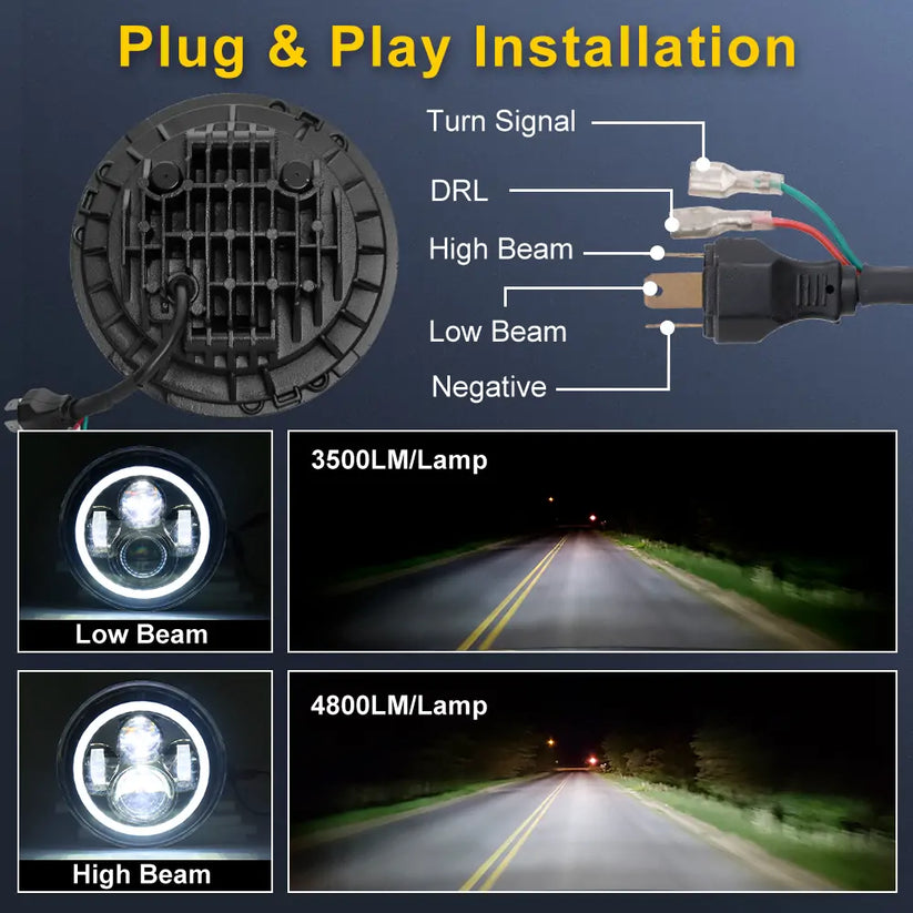 - Standard H4 & H13 plug, plug and play, Easy to install.