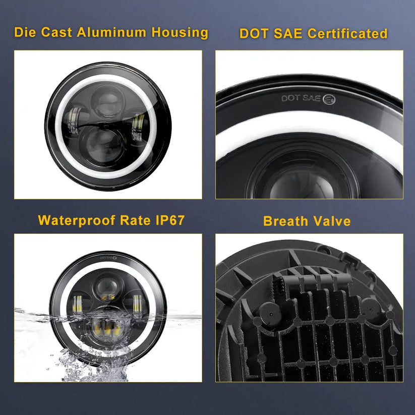 - Name: 7 inch 45W Headlights with Angel Eye | Pair