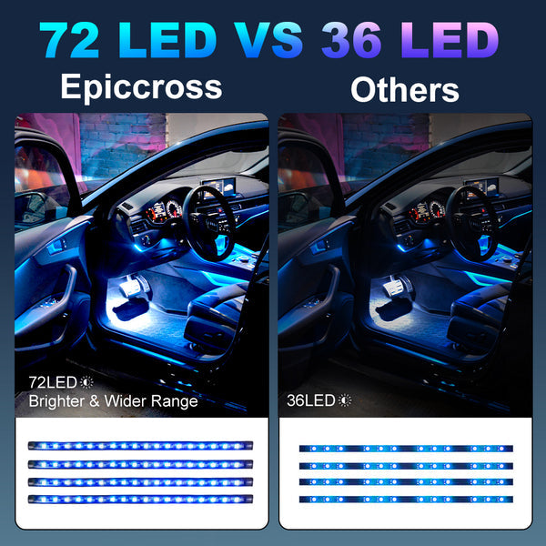 APP control: Also the Car Interior LED Lights uses wireless APP for control suitable for IOS or Android. Choose any color you like from 16 million colors. Besides APP control to turn lights on or off, dim or brighten and even adjust the speed of mode