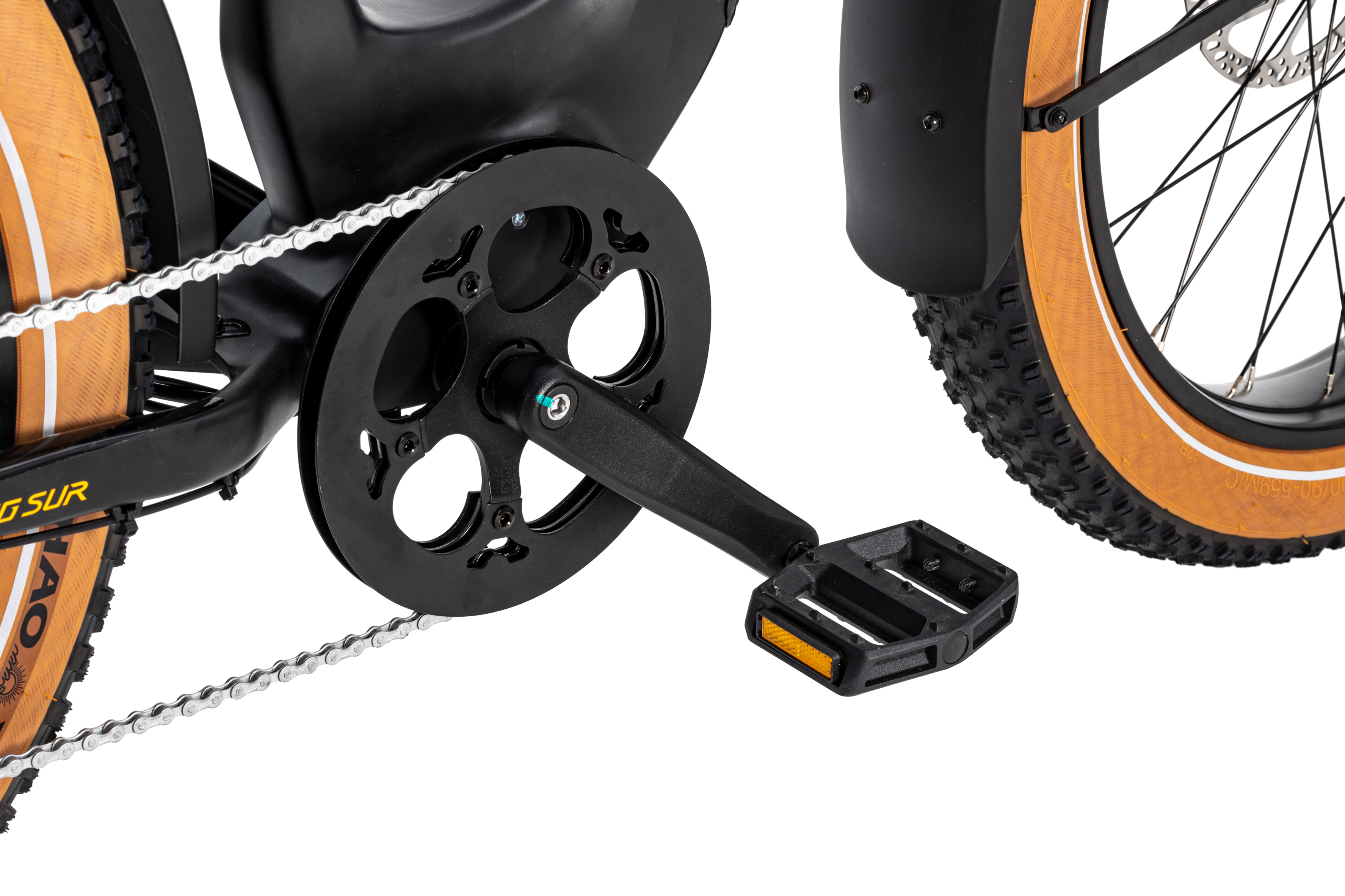 Big Sur Matte Black | Big Sur: a 26" x 4" fat tire e-bike with 750W motor, safe with big headlight, rotor & battery. Comfortable with 52T crankset & AIMA saddle.