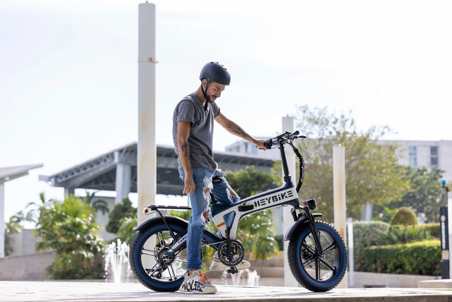 Connects with Heybike app and features anti-theft alerts when your bike is moved, and allows remote locking through bluetooth. Additional fees are required for data services