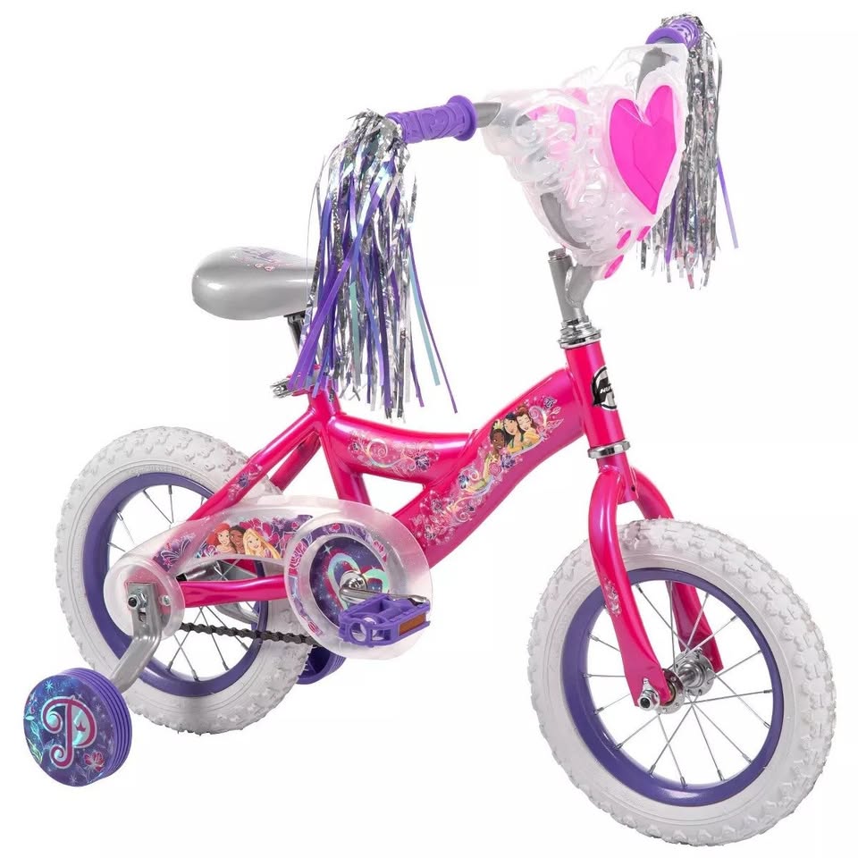 Feature: The perfect first bike for your Disney Princess lover, this 12-inch girls’ bike with training wheels has all the right features to help your child grow in confidence when bike riding. Frame: The durable steel frame is decorated with beautiful Disney Princess design. Accessories: Handlebar basket and shimmering streamers add fun details to your child’s ride. Brake: Easy to use coaster brake is quickly engaged to help your rider control speed as she rides. Tires: 12x1.95” tires offer a smooth ride on sidewalks and paved paths Training Wheels: Removable training wheels provide added stability to your child’s ride and can be removed when she is ready to ride on two wheels. Ideal Rider: 3-5 years old, 60 lbs. max weight, 37-42in recommended height.
