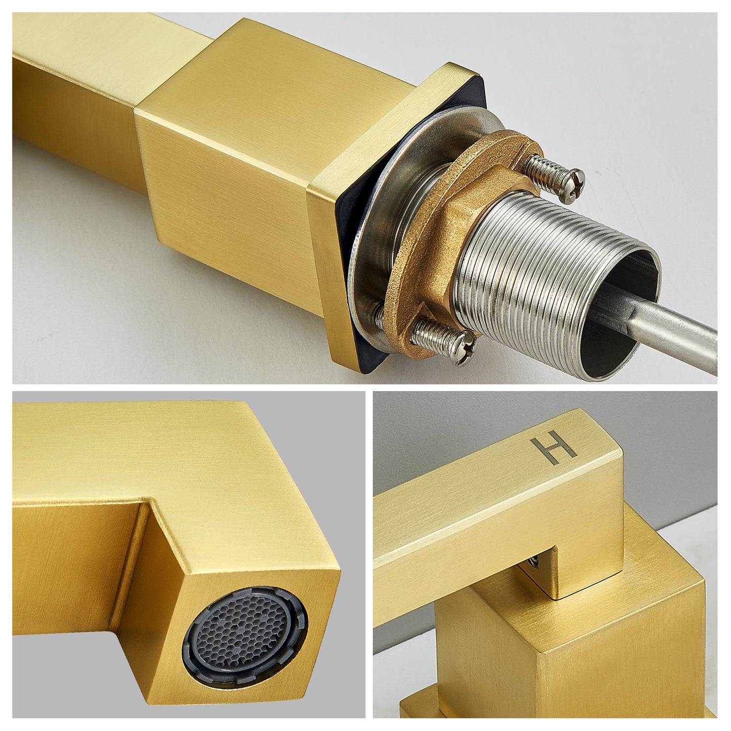 - [EXQUISITE DESIGN]: This Lavatory Faucets has 360° Swivel Spout and double straight handles that are convenient for Preciser and easier Control in water temperature and volume, The easy-to-clean nozzle is convenient for your daily cleaning, and the high arc is convenient for your unrestricted use, and is suitable for most bathroom designs.