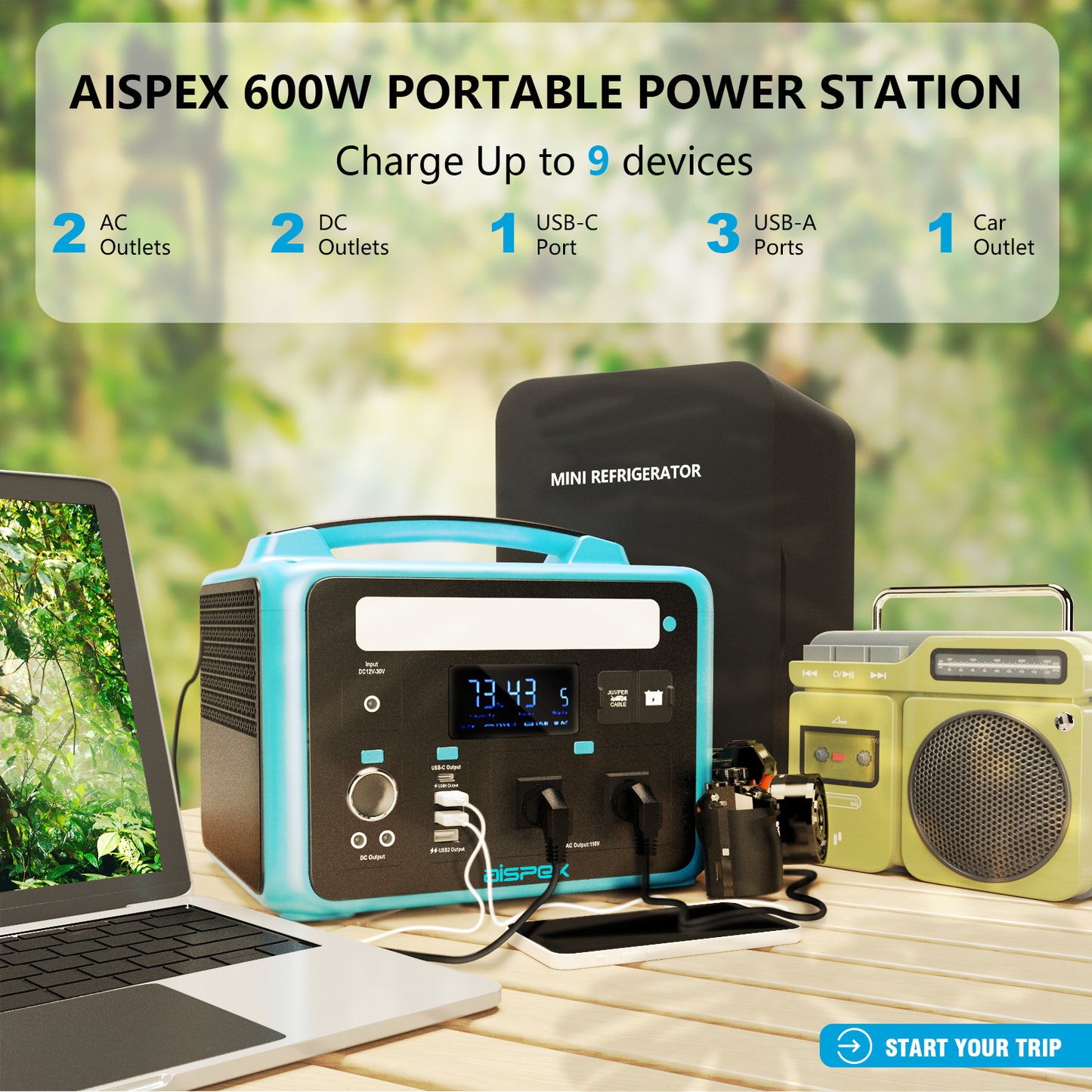 - Sustain Your Everyday Device: Featuring a pure sine wave output of 600W, the AISPEX power station is a must-have for charging your daily devices. APS-600 can even run devices with rated power up to 1200 watts (It’s primarily suitable for resistive loads such as lights, space heaters, toasters, ovens, and coffee makers.)