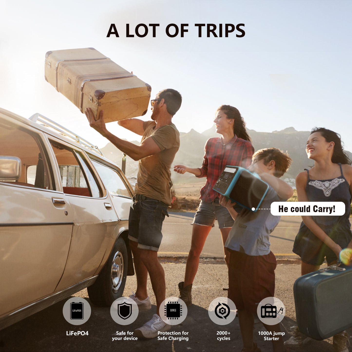 - Charging Up To 9 Devices Simultaneously: AISPEX power station has a complete output ports including 2*110V/600W AC Outlets, 2*12V/10A DC5521 Outputs, 1*12V/10A Car Port, 3*USB-A Outputs, 1*TYPE C PD60W Output, 1* 1000A max Jumper Starter and LCD screen. Looking to streamline the clutter of charging multiple devices? Simplify your setup by using just one power station.